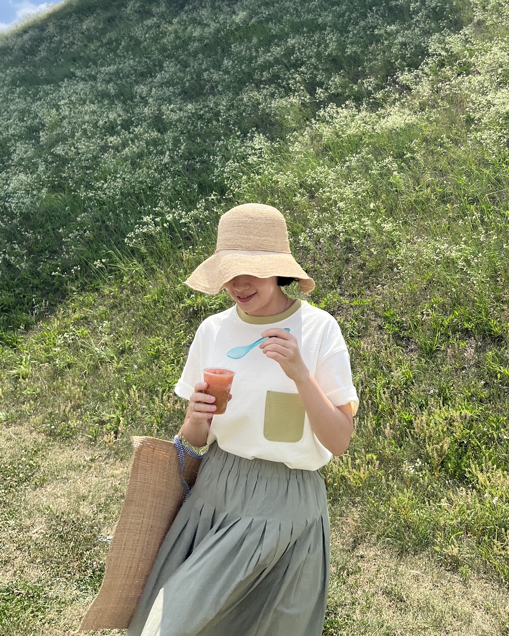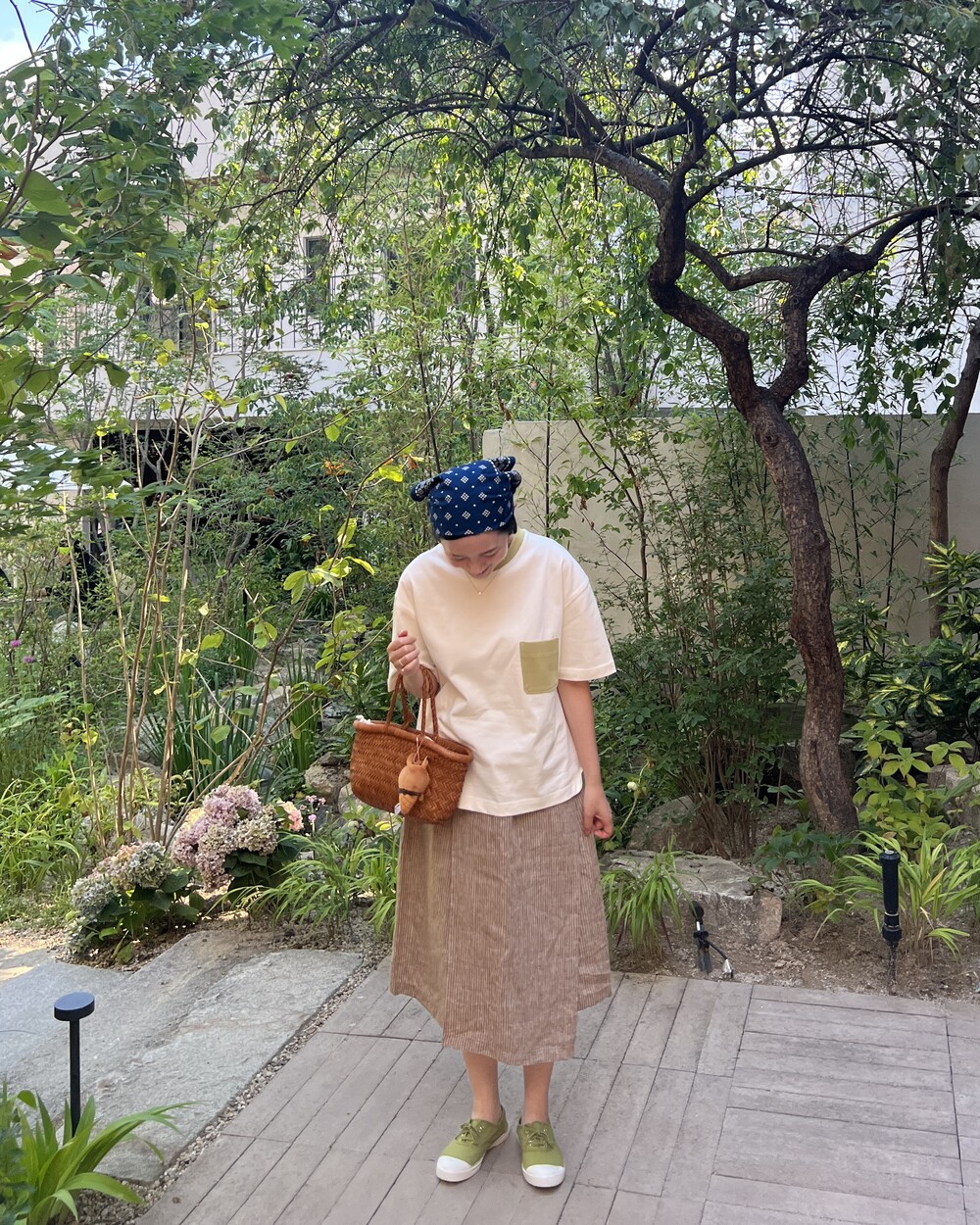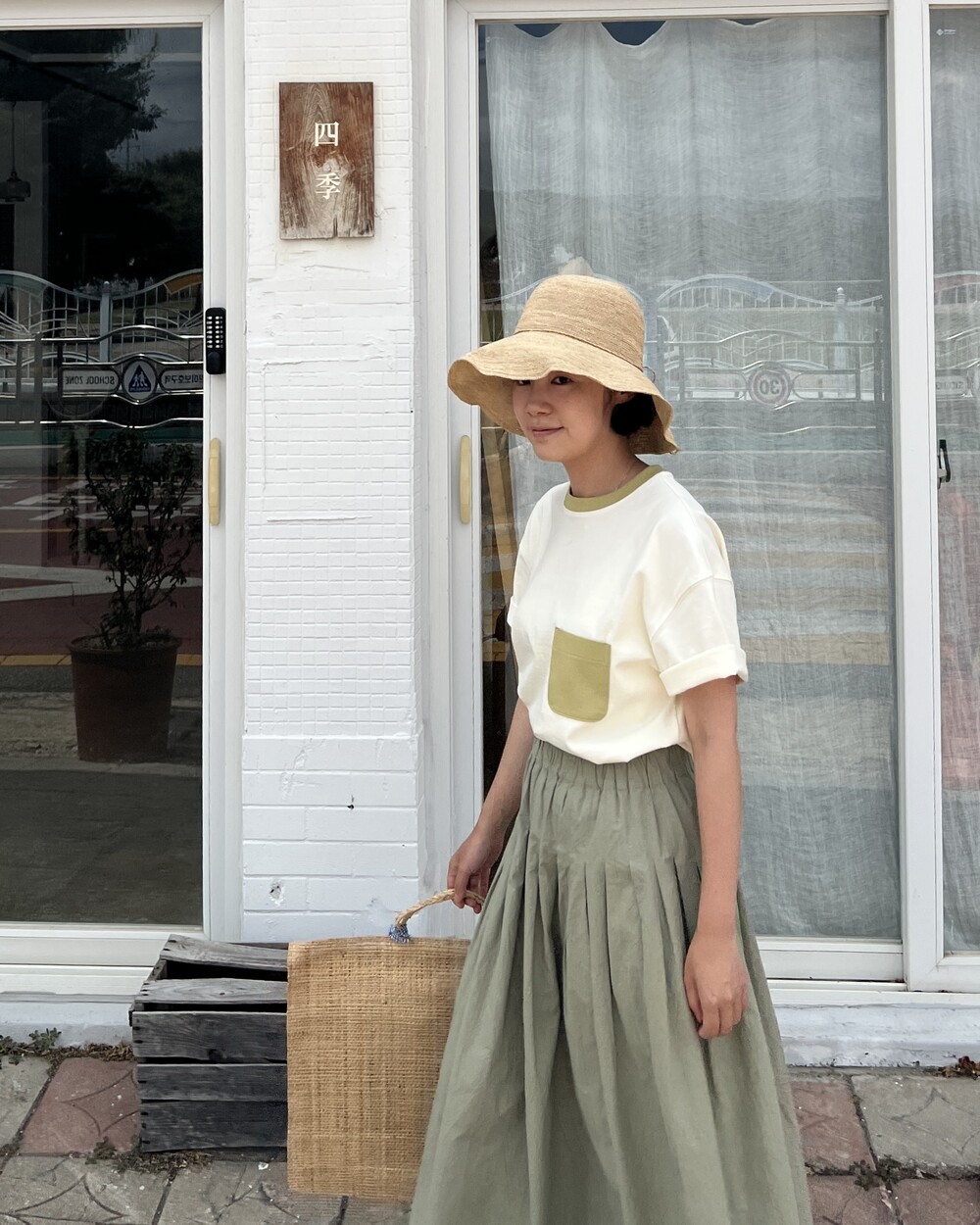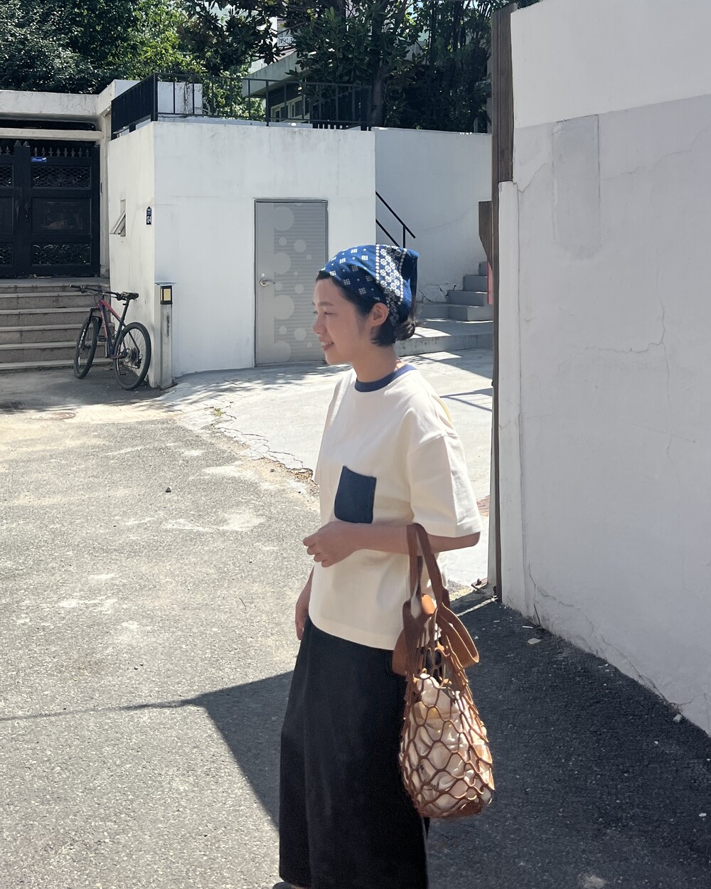 지난여름 인기가 많았던 Organic pocket T-shirt와 같은 패턴에 새로운 원단으로 보여드려요!