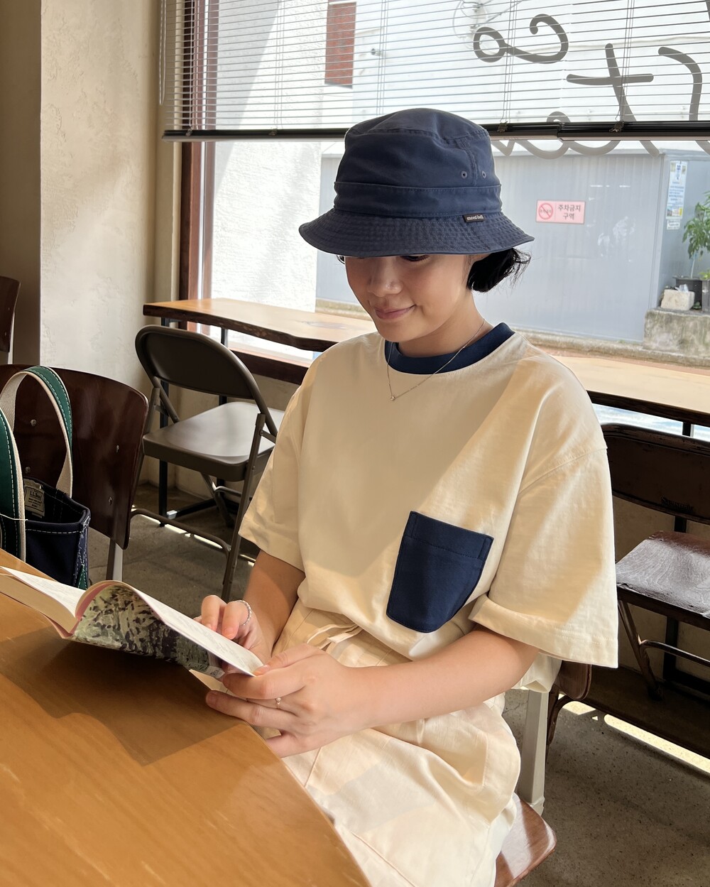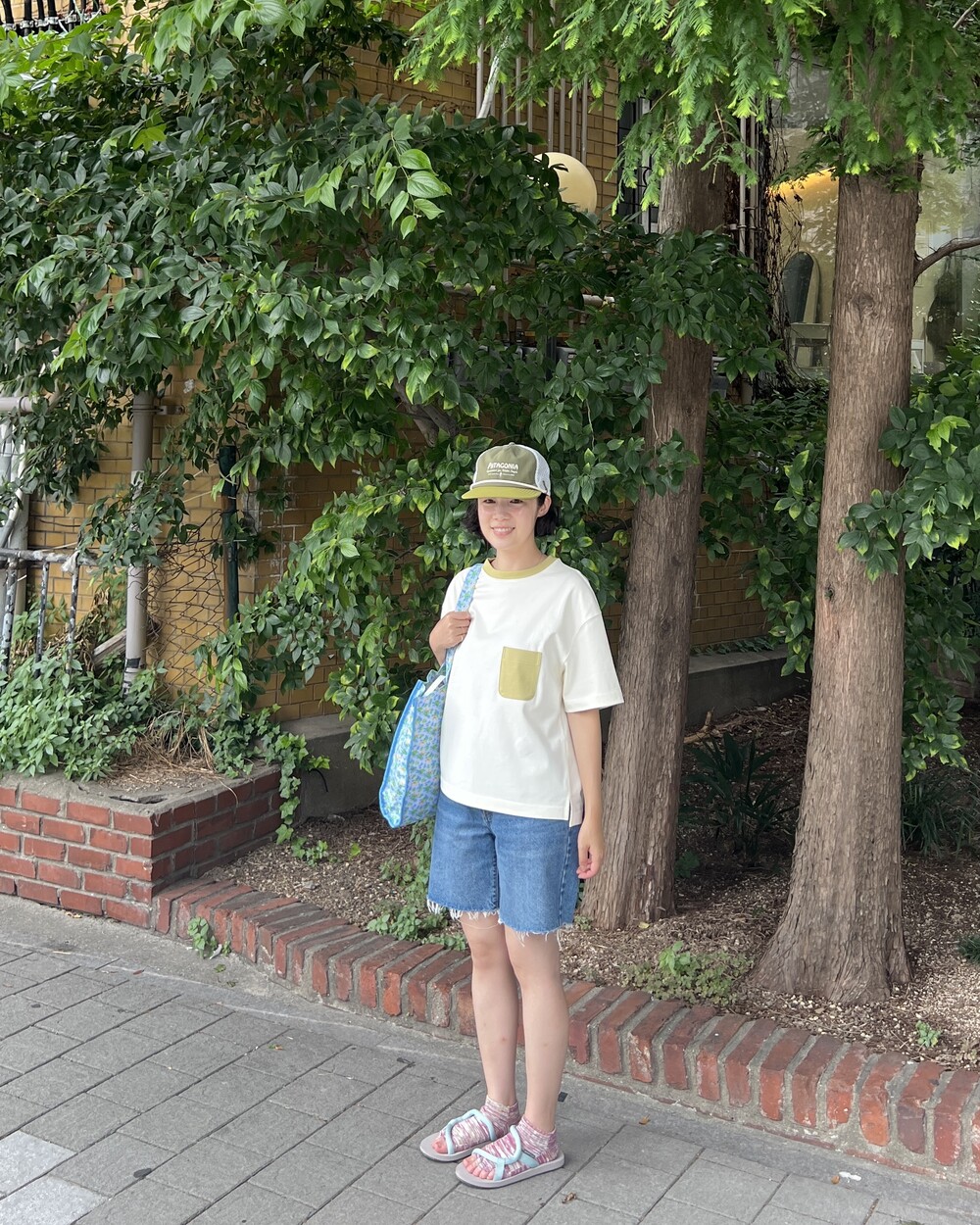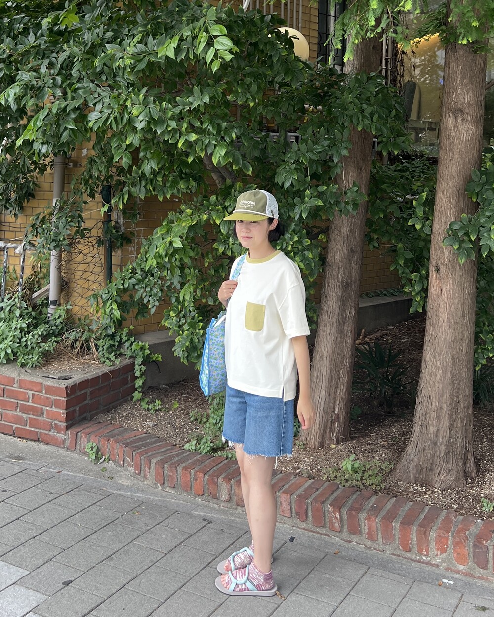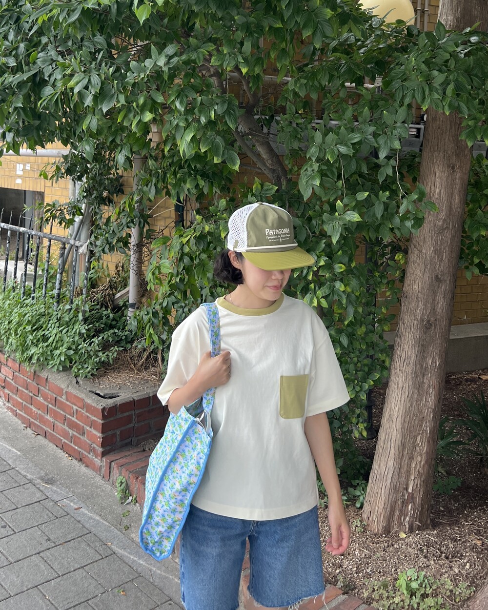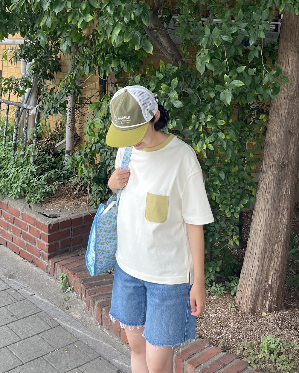 목과 포켓에 배색 디테일을 더해, 심플하지만 밋밋하지 않은 컬러가 포인트가 되는 티셔츠랍니다.
