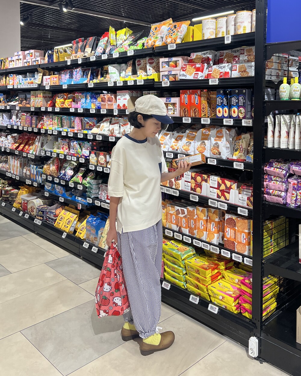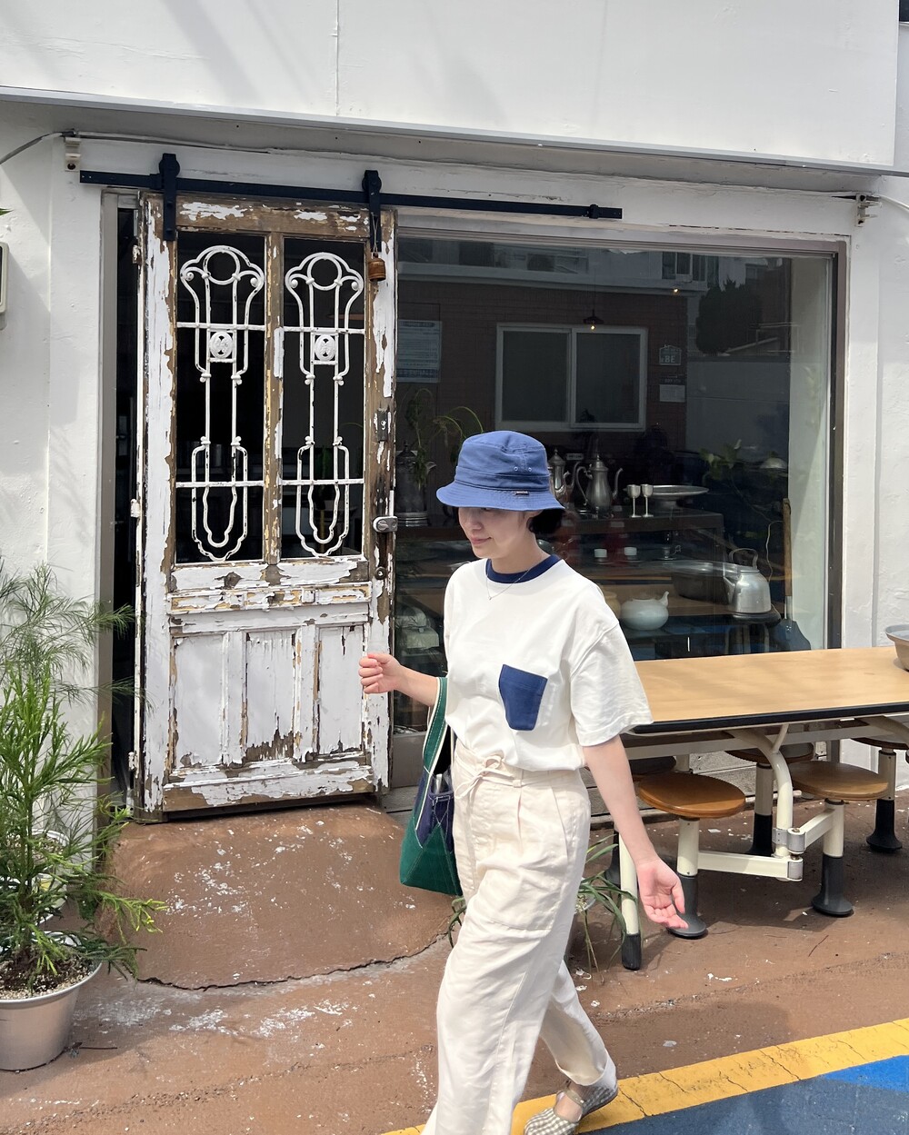 화이트 팬츠랑 입으니 뭔가 시원해 보이고 좋더라고요 🤍 여름 느낌도 나고!