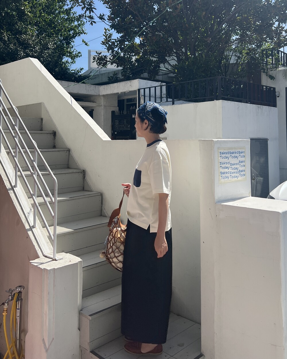 티셔츠에 배색이 있어서 드레스들이랑 레이어링 해도 너무 심심하지 않으면서 좋더라고요!
