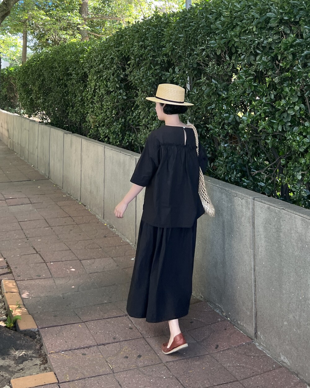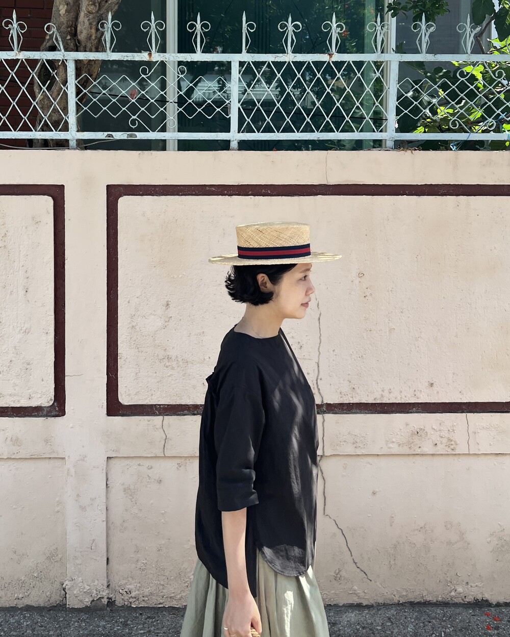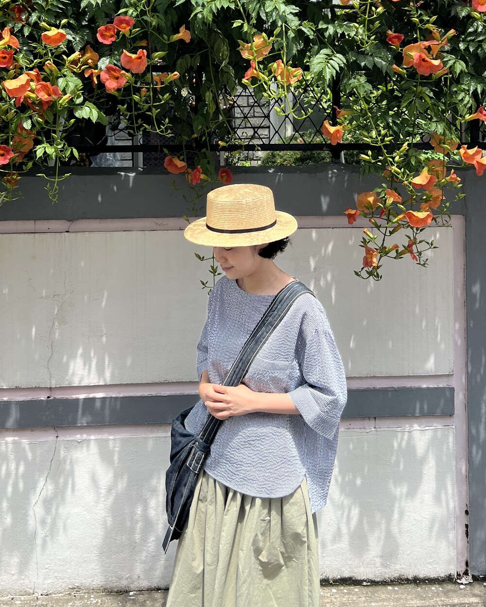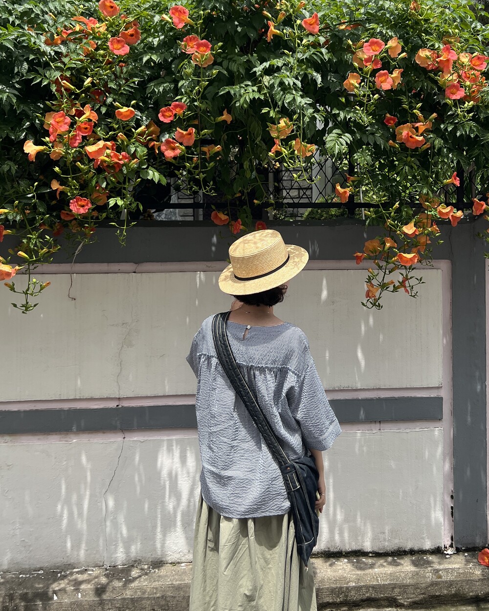 셋업으로 입기도 좋고 다른 다양한 하의와 매치하여 가벼운 외출, 여행지의 마실 룩까지 폭넓게 활용할 수 있답니다. 가벼운 리넨 팬츠나 롱스커트와 함께하면 더욱 멋스럽고요.