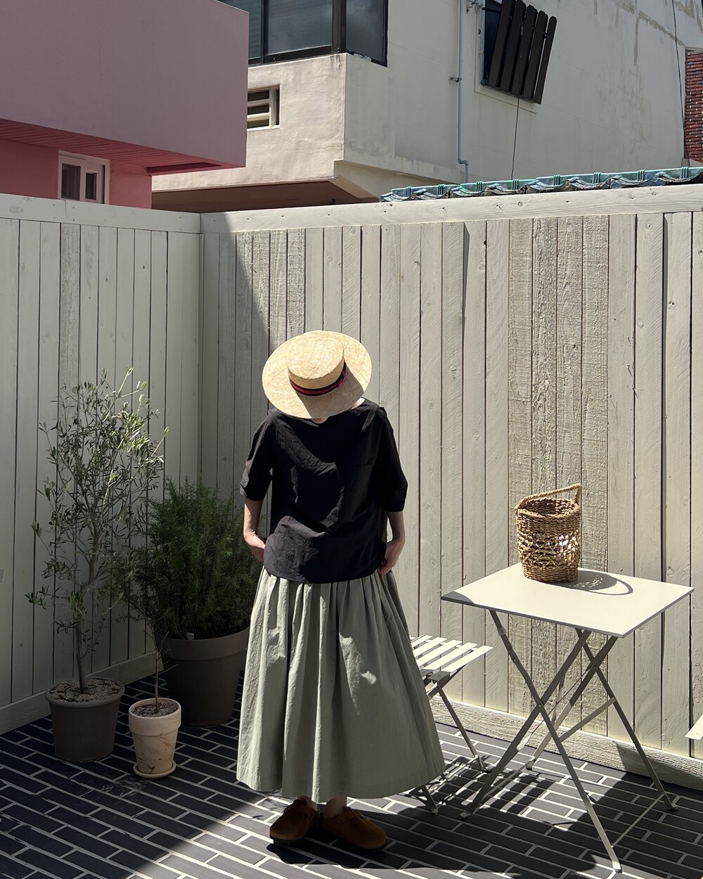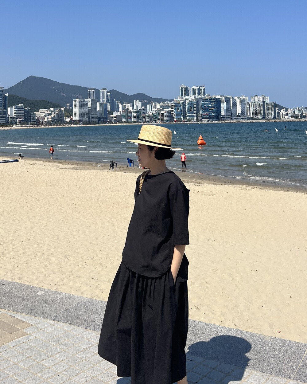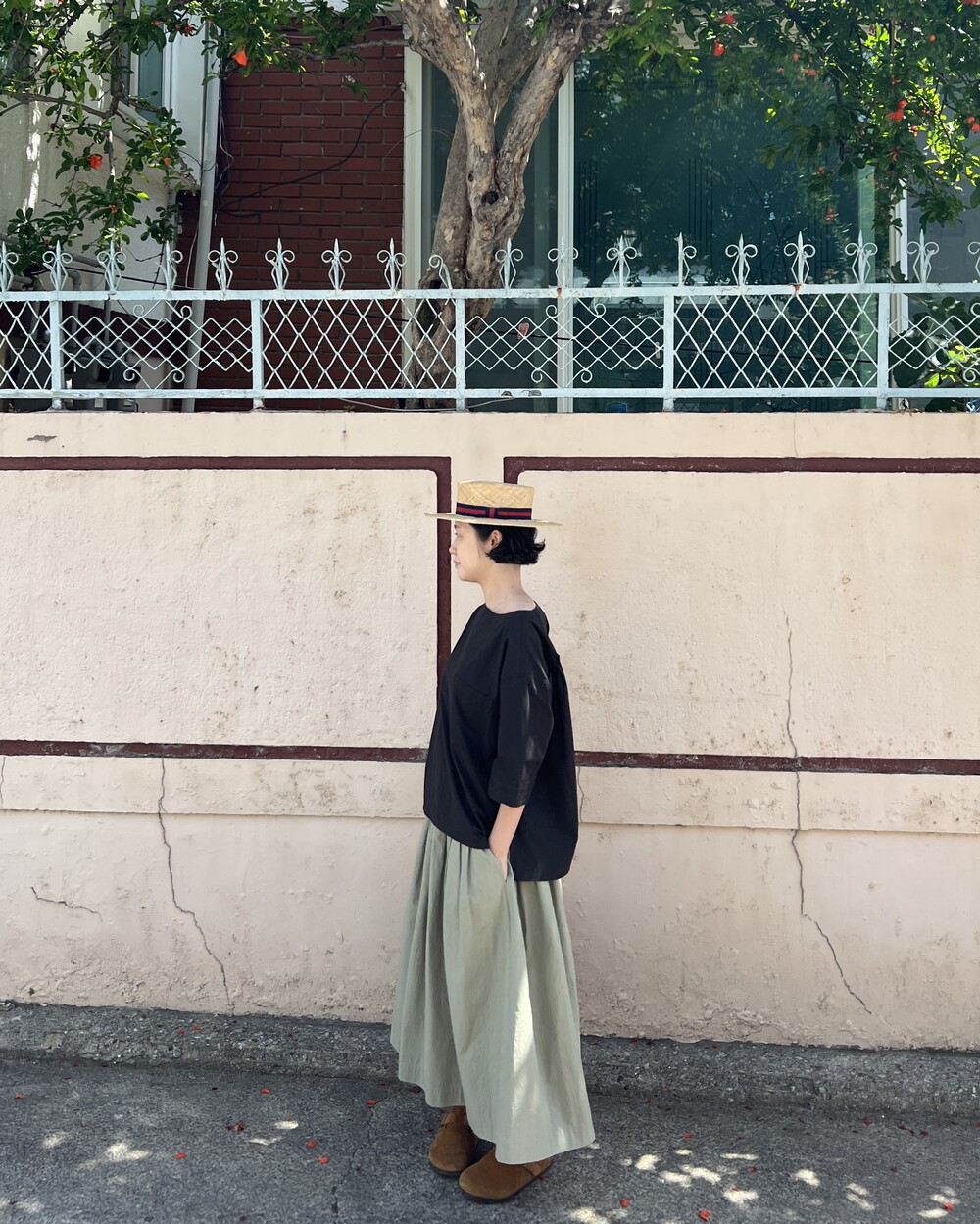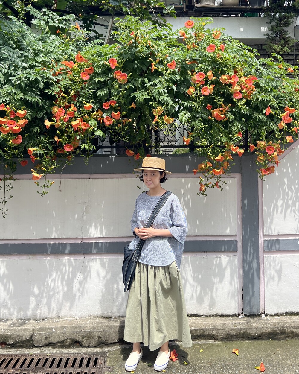 셋업으로 입기도 좋고 다른 다양한 하의와 매치하여 가벼운 외출, 여행지의 마실 룩까지 폭넓게 활용할 수 있답니다. 가벼운 리넨 팬츠나 롱스커트와 함께하면 더욱 멋스럽고요.