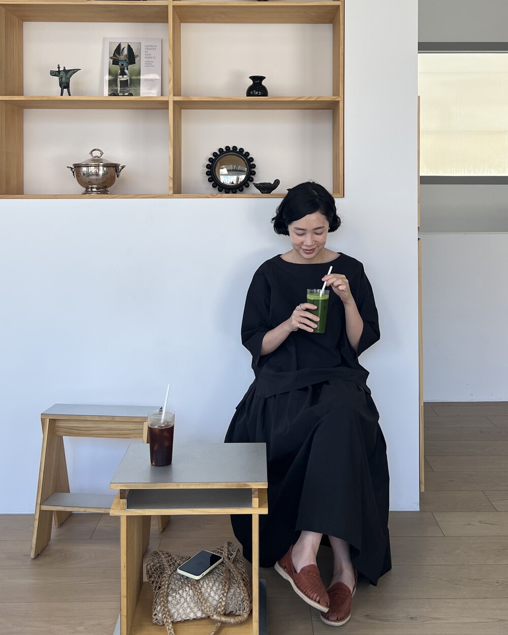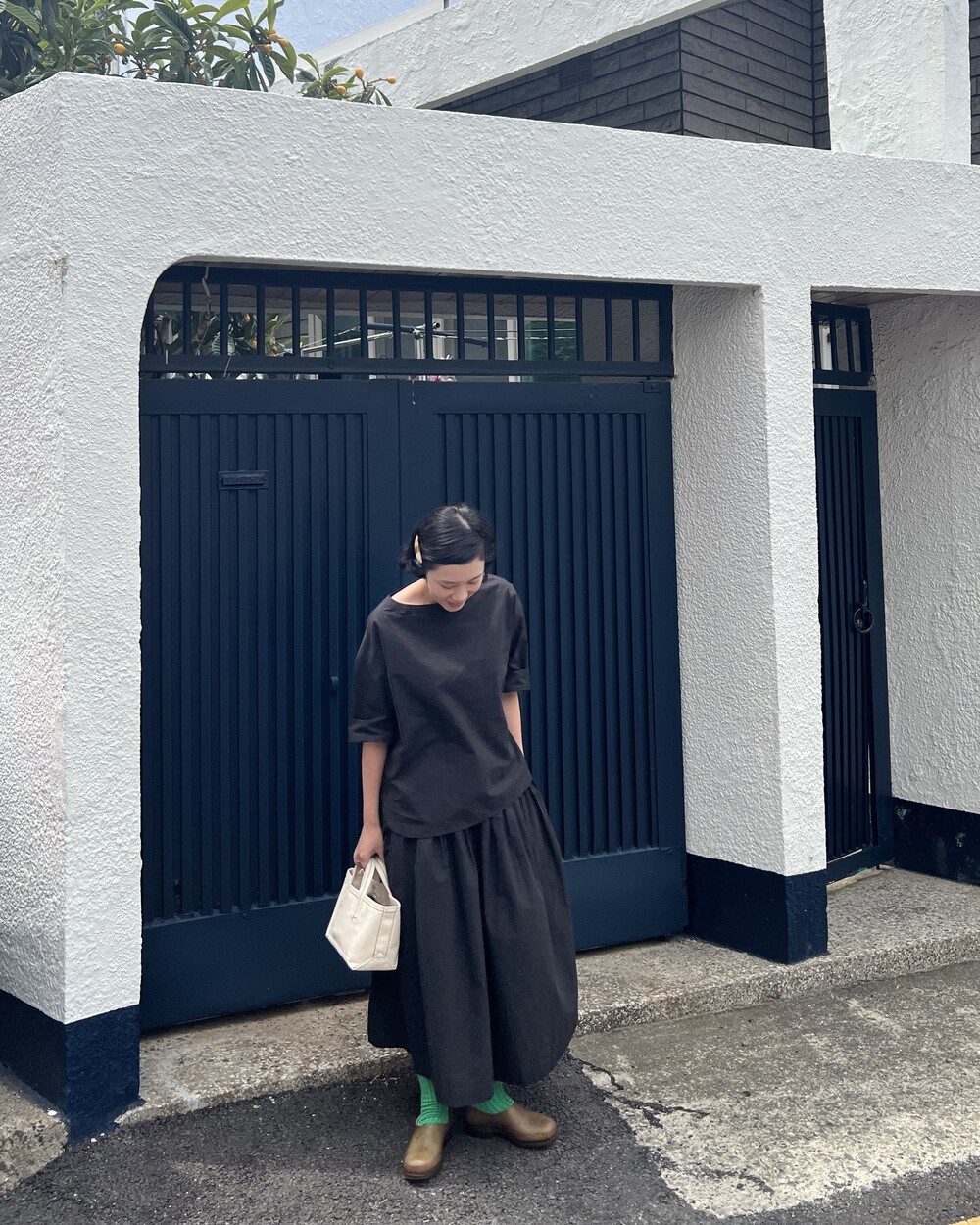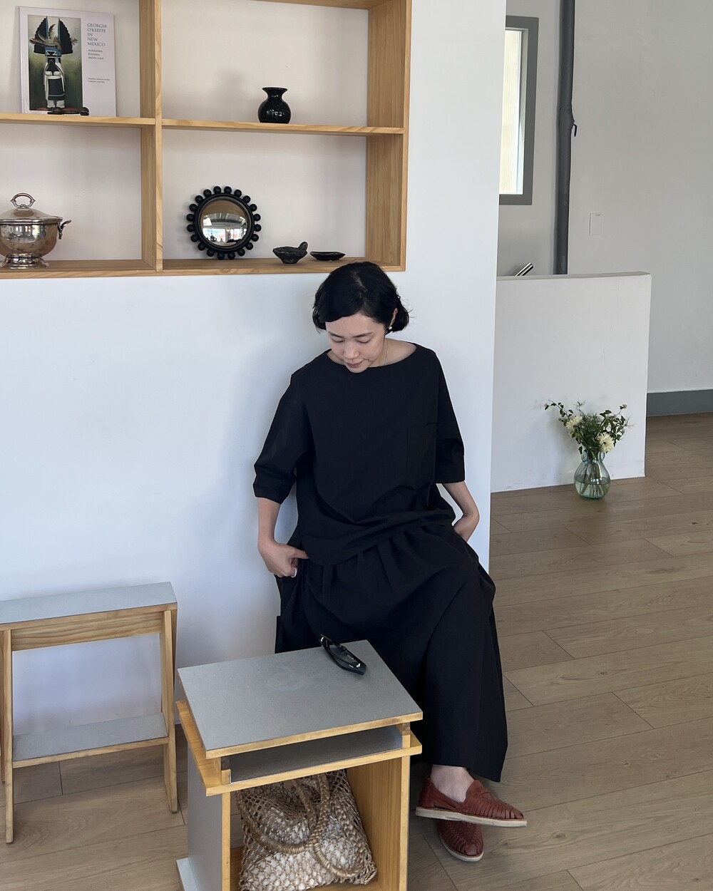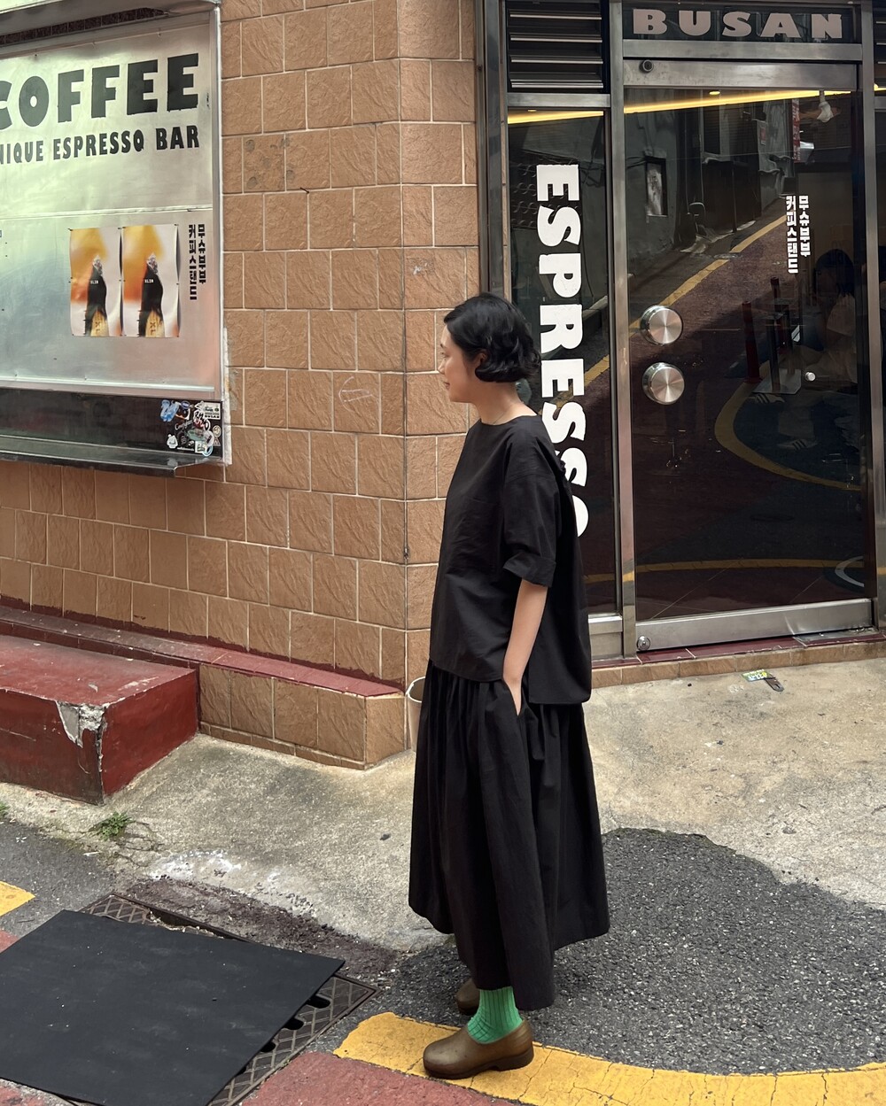 자연스러운 블랙 컬러라고 할까요. 그래서 이렇게 셋업으로 입어도 블랙의 강렬한 느낌보다는 자연스러운 느낌이 좋았어요.