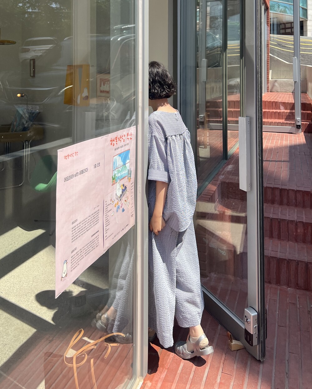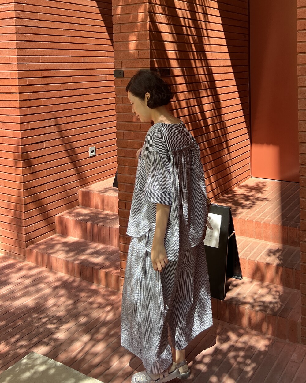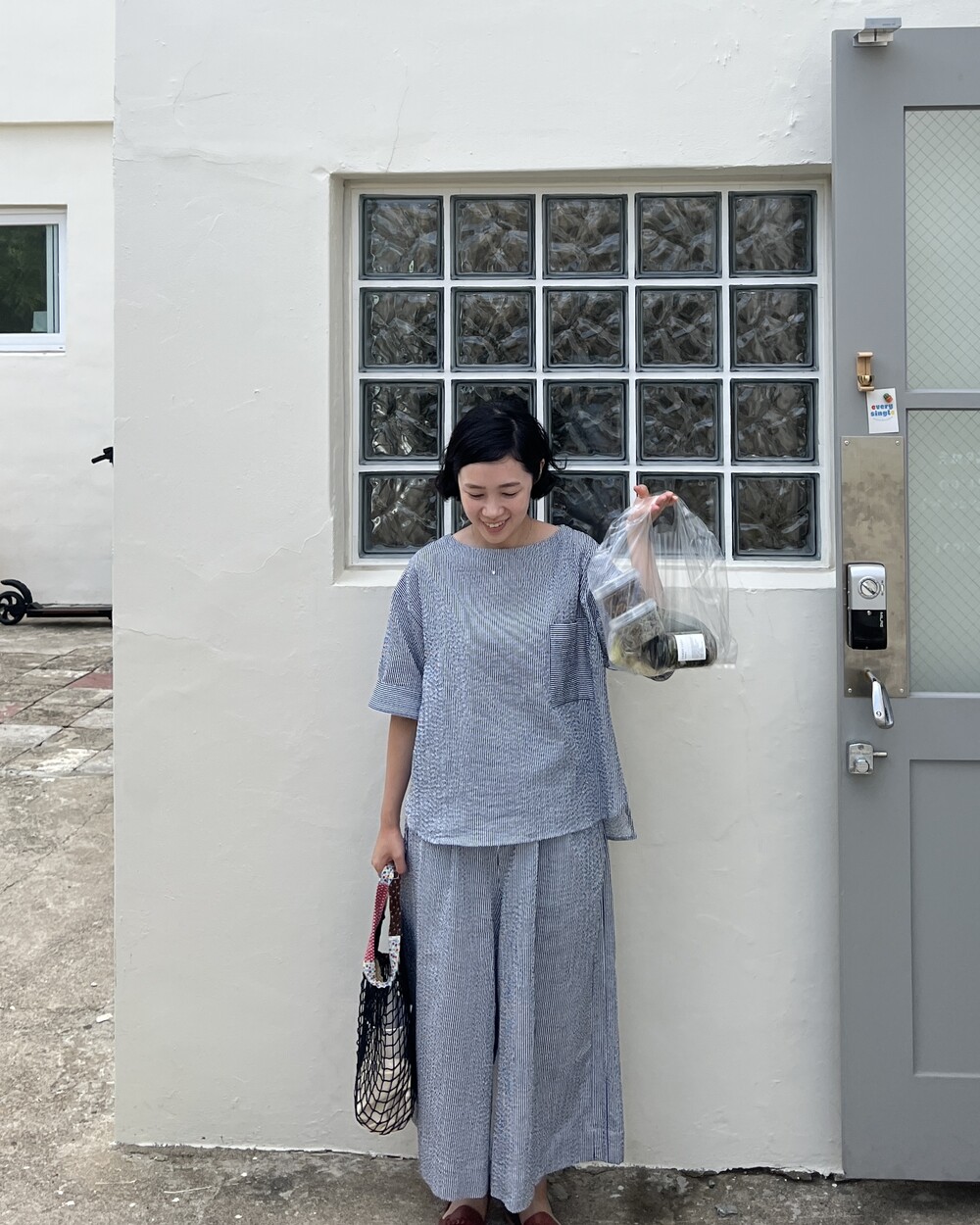 아더 컬러는 블루 스트라이프예요. 제가 늘 애정하는 시어서커 원단으로 제작했답니다. 💙