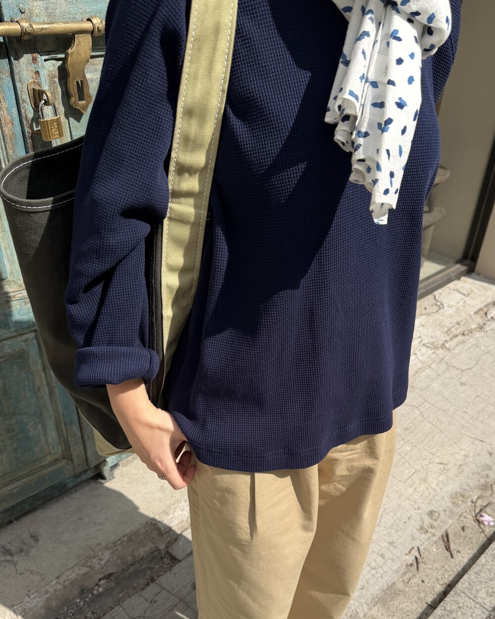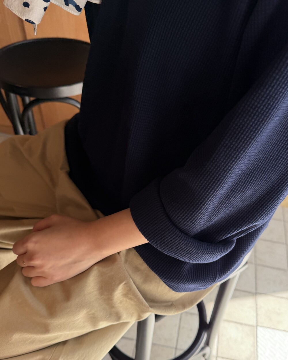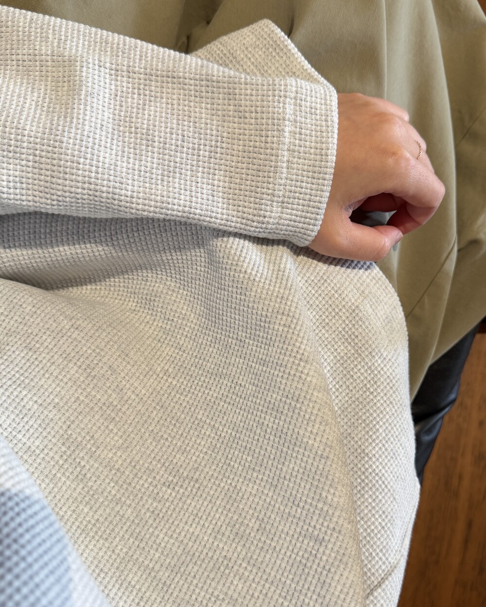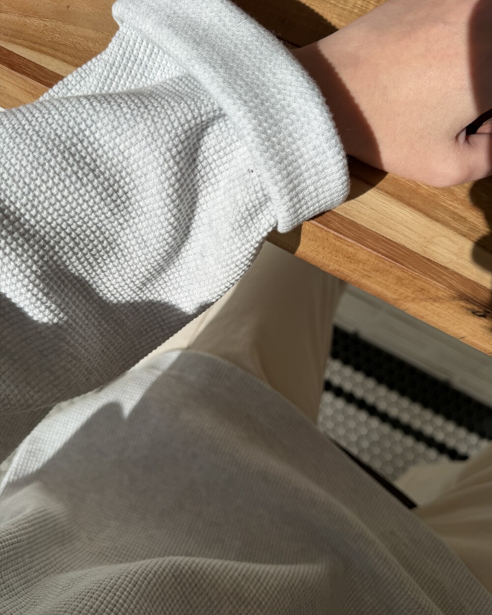 입체적인 와플 조직으로 착용했을 때 소재만으로도 존재감이 있어요.