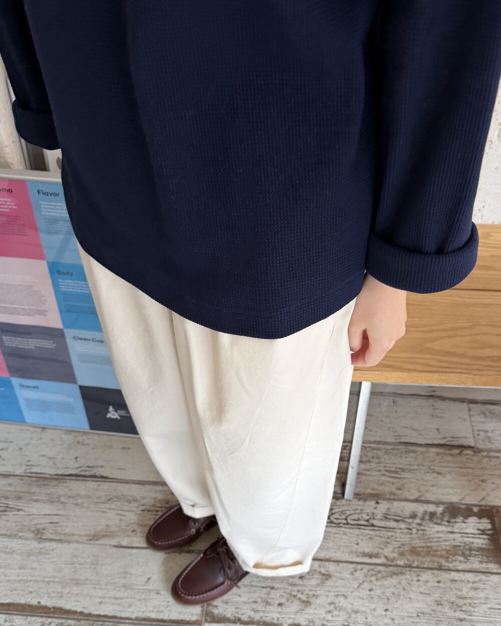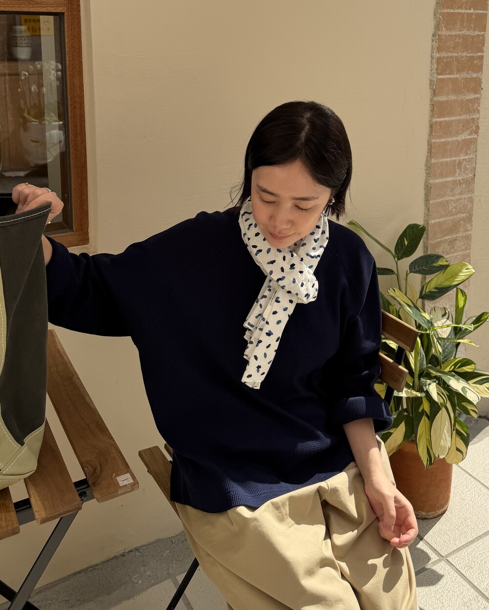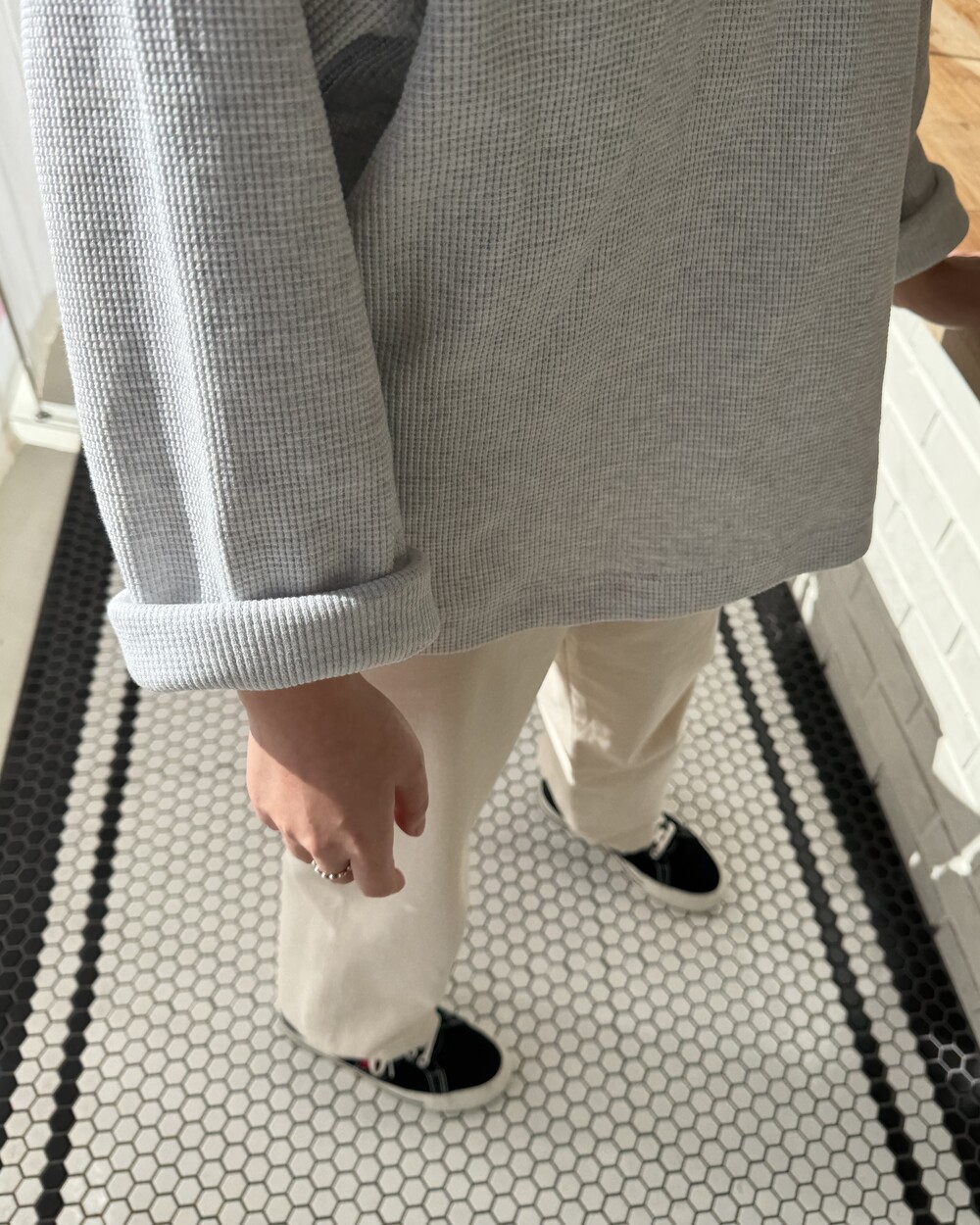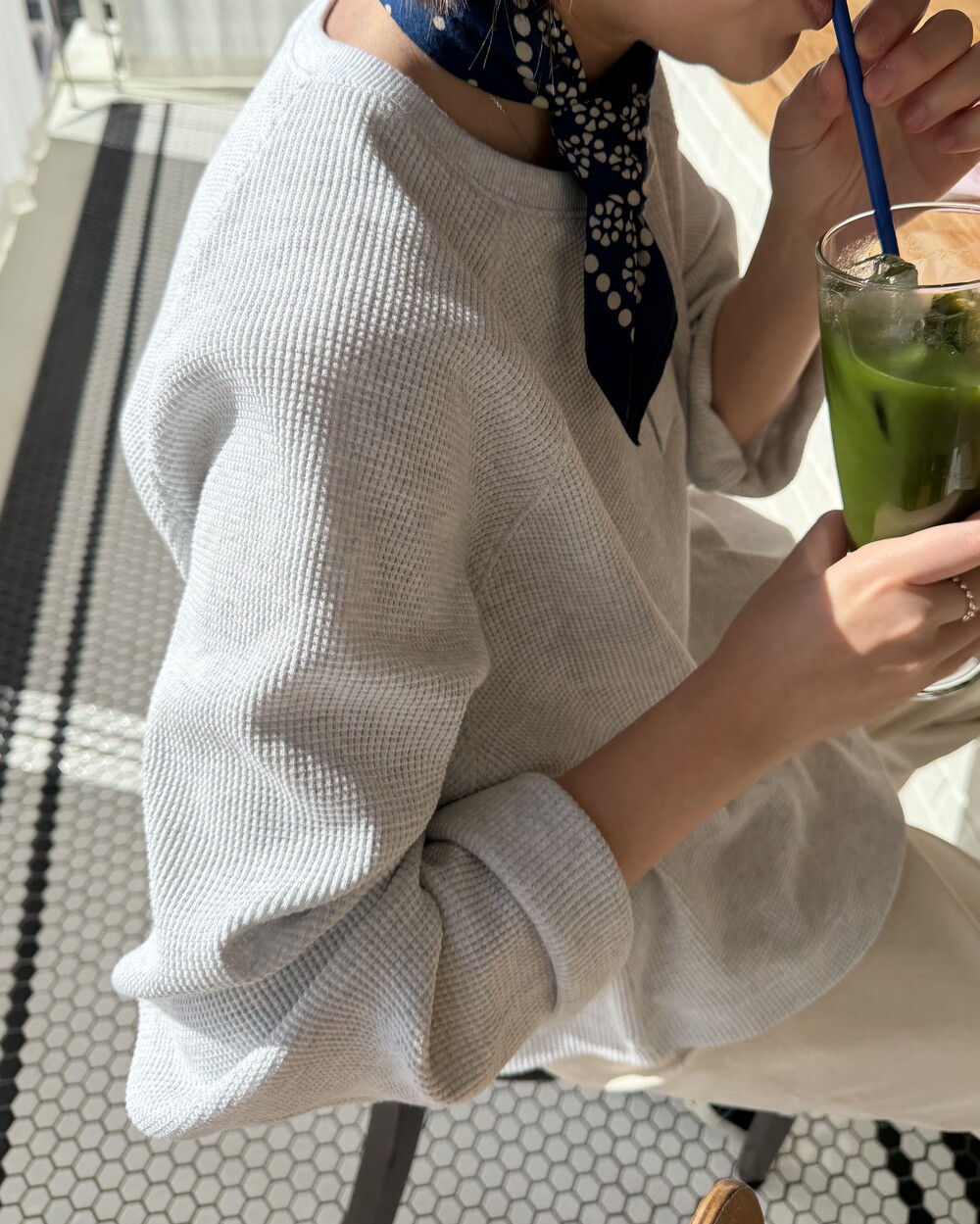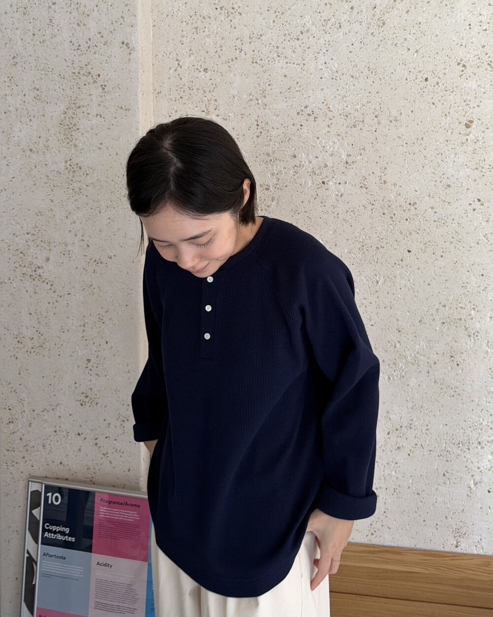 입체적인 와플 조직으로 착용했을 때 소재만으로도 존재감이 있어요.