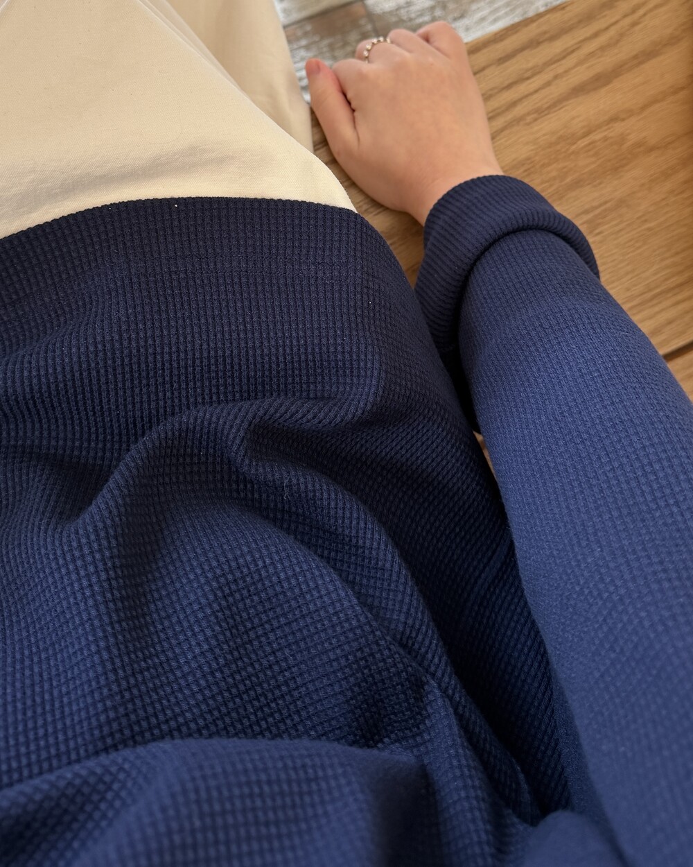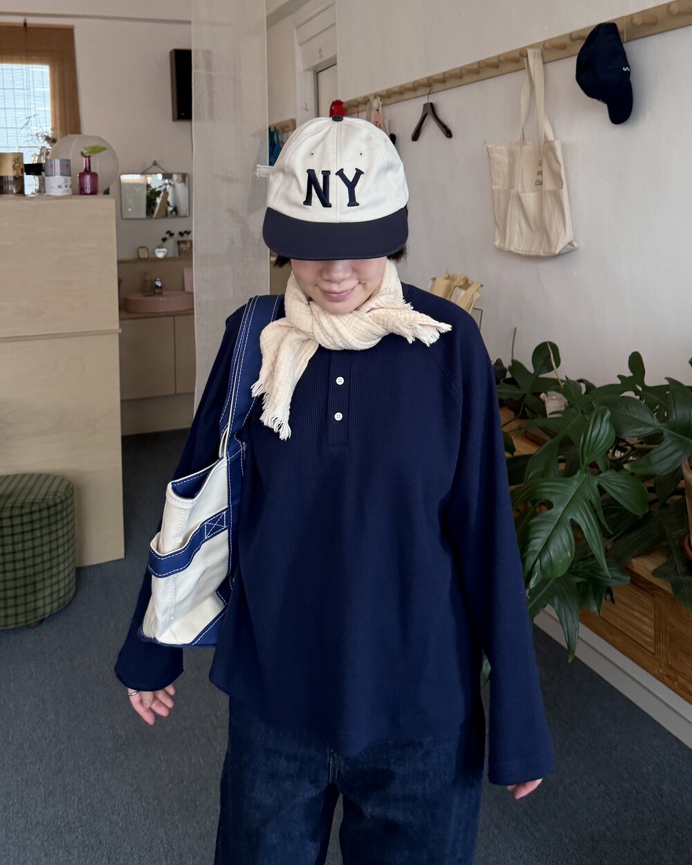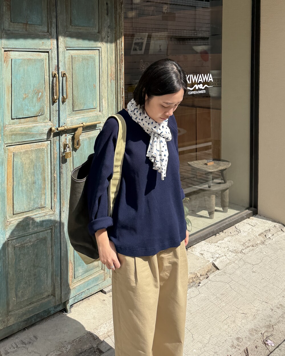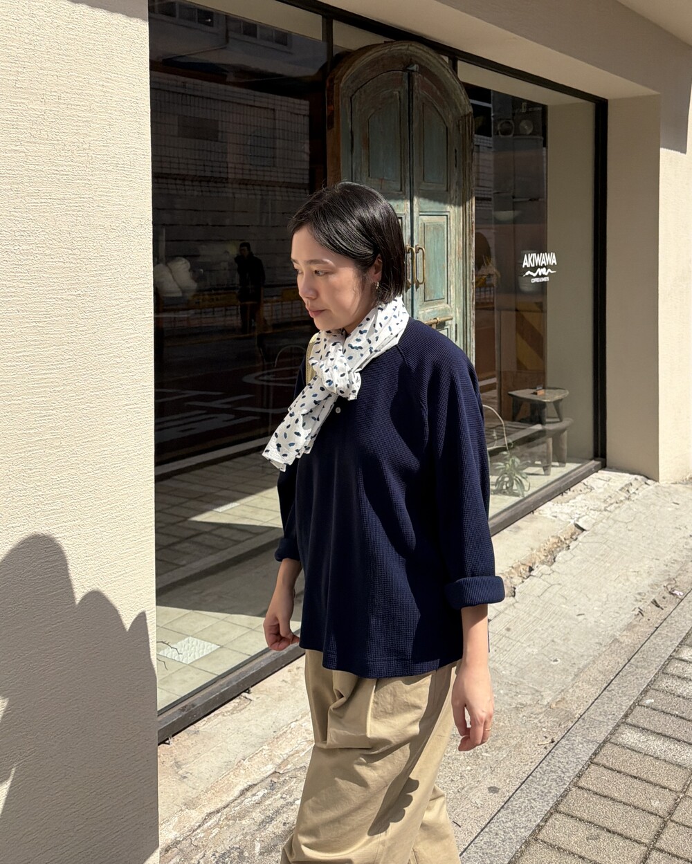 입체적인 와플 조직으로 착용했을 때 소재만으로도 존재감이 있어요.