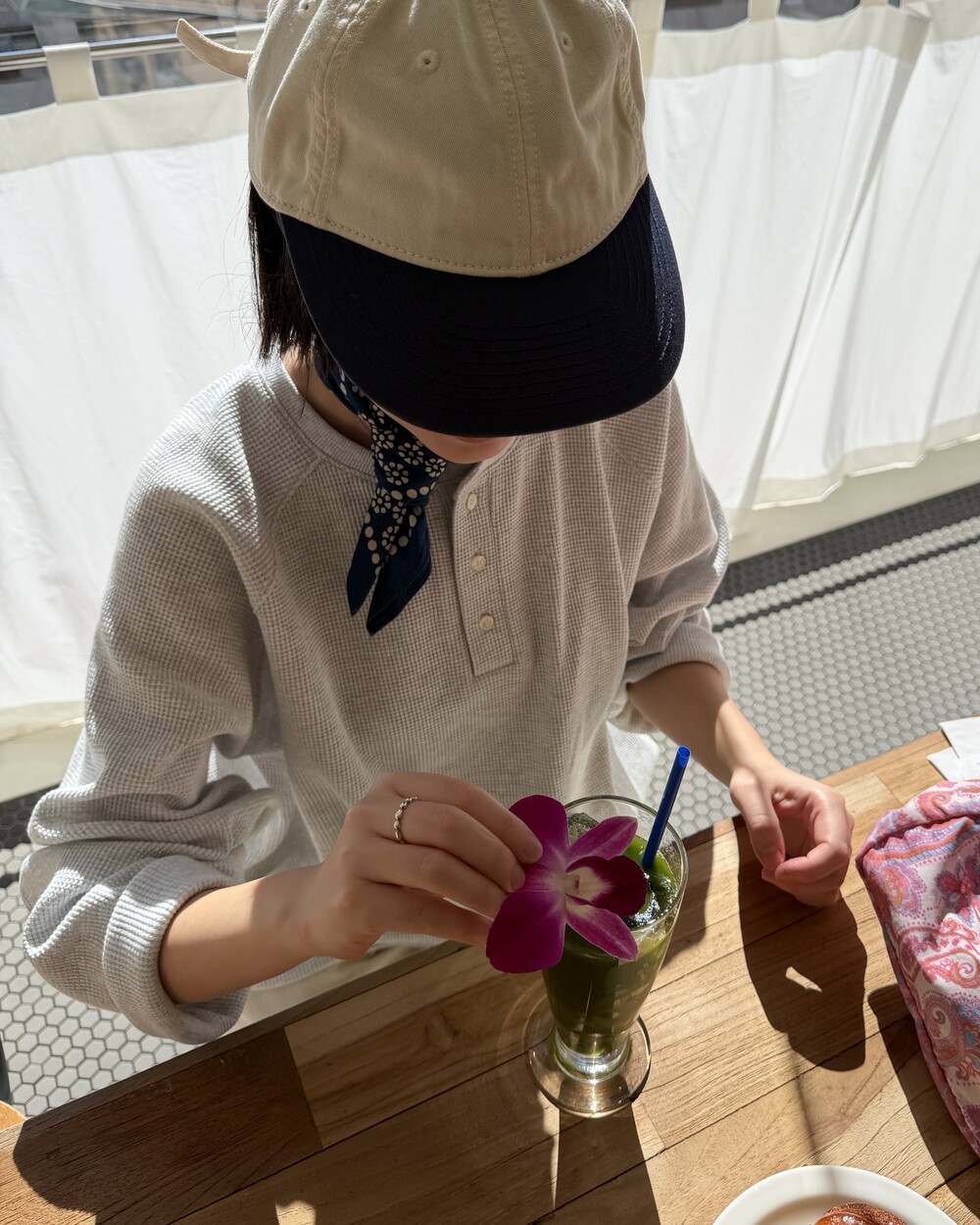 밝은 느낌으로 내추럴 컬러 팬츠랑도 함께해도 예쁘겠어요!