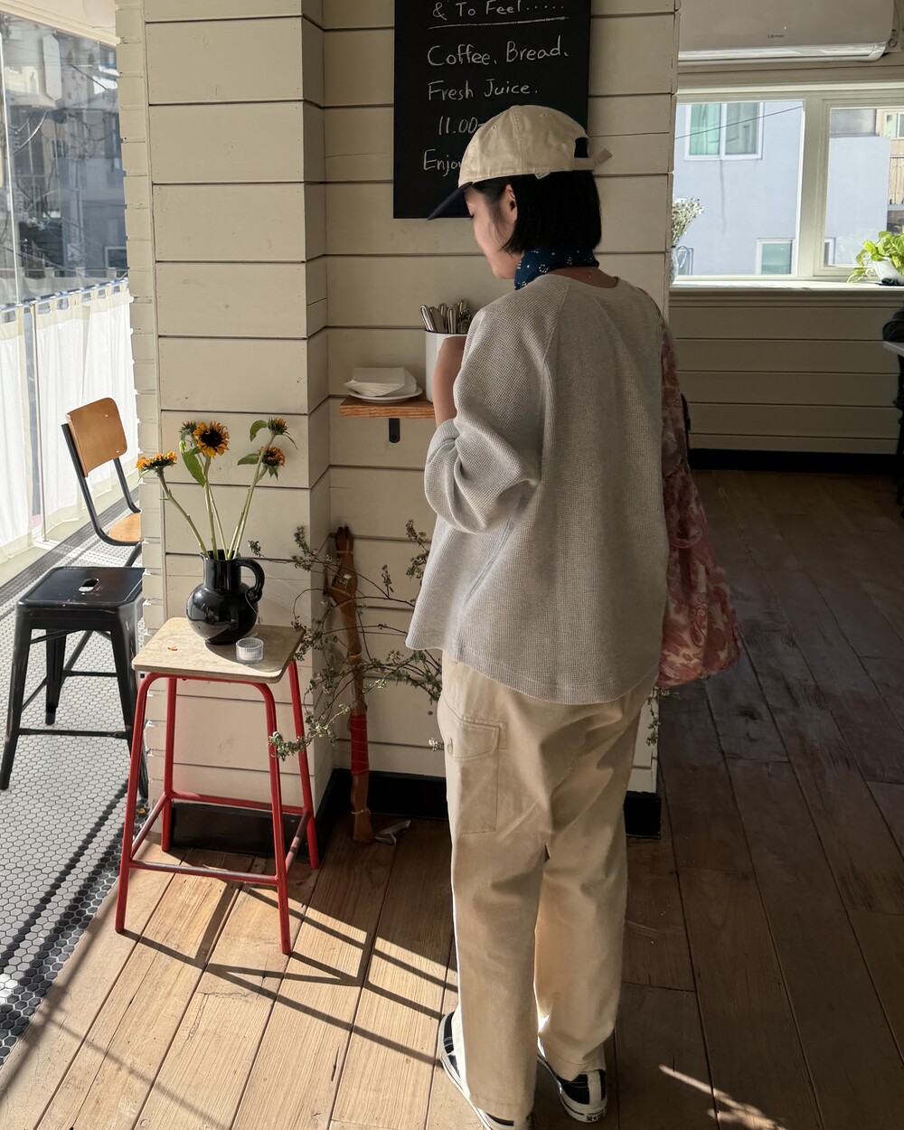 지나치게 박시하지 않으면서도 상체를 자연스럽게 커버해 부담 없이 입기 좋답니다.