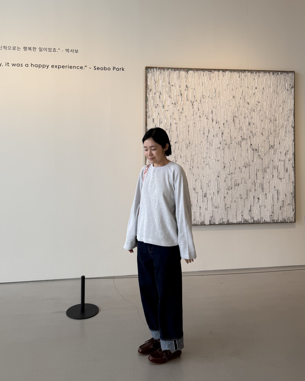 아주 편안하지만 너무 편해 보이지는 않는 멋스러움이 있는 티셔츠랍니다. 얼른 날 풀리면 청바지에 슬리퍼랑 코디해 보고 싶어요. 🤍