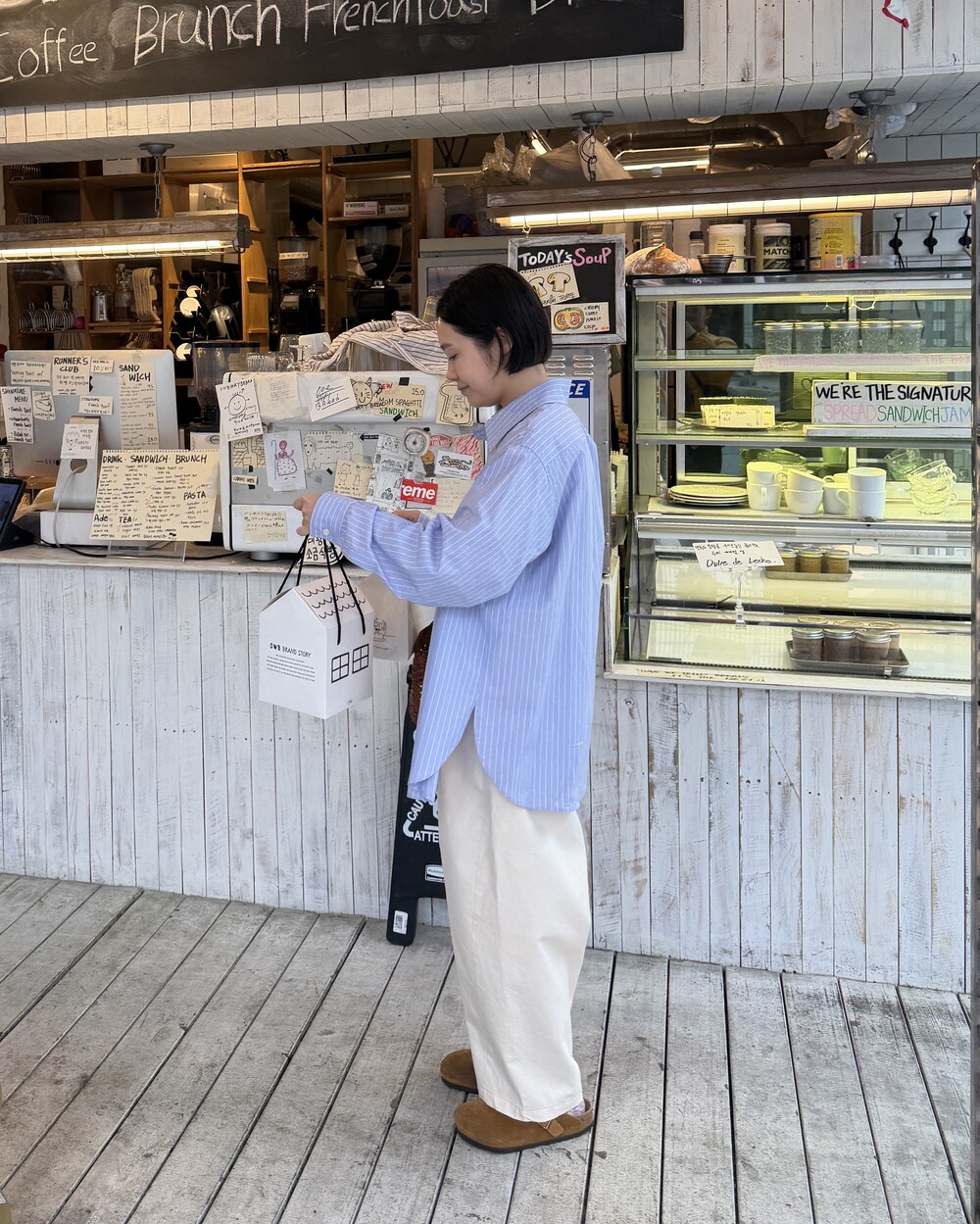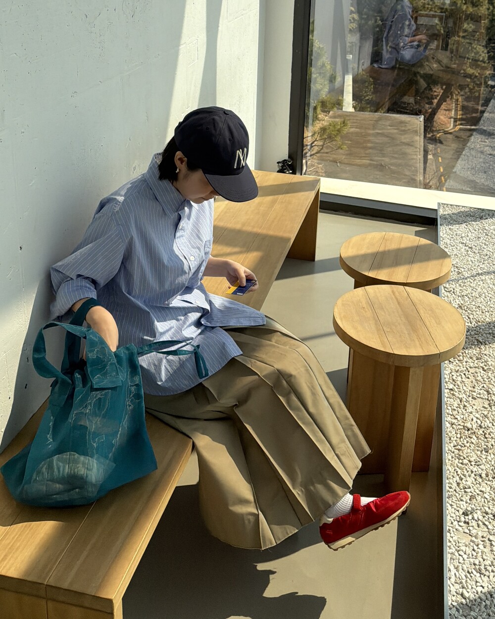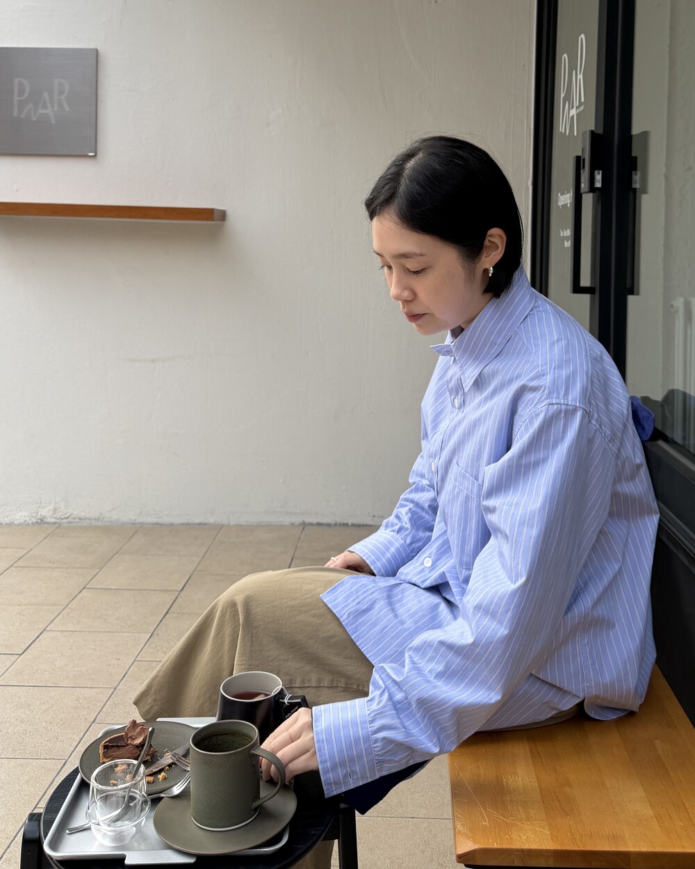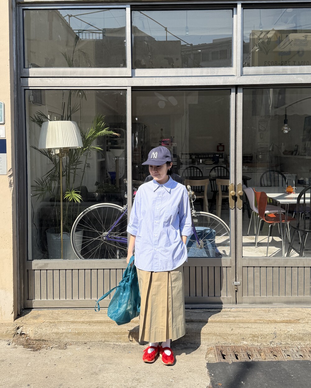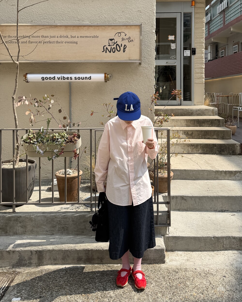 마치 남자친구나 아빠의 셔츠를 빌려 입은 듯한 무심한 듯한 무드이면서도 컬러감이나 옆라인 때문에 또 너무 매니시한 느낌은 아니어서 좋았어요!