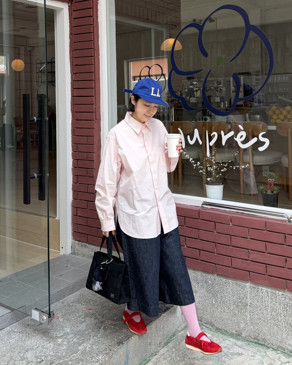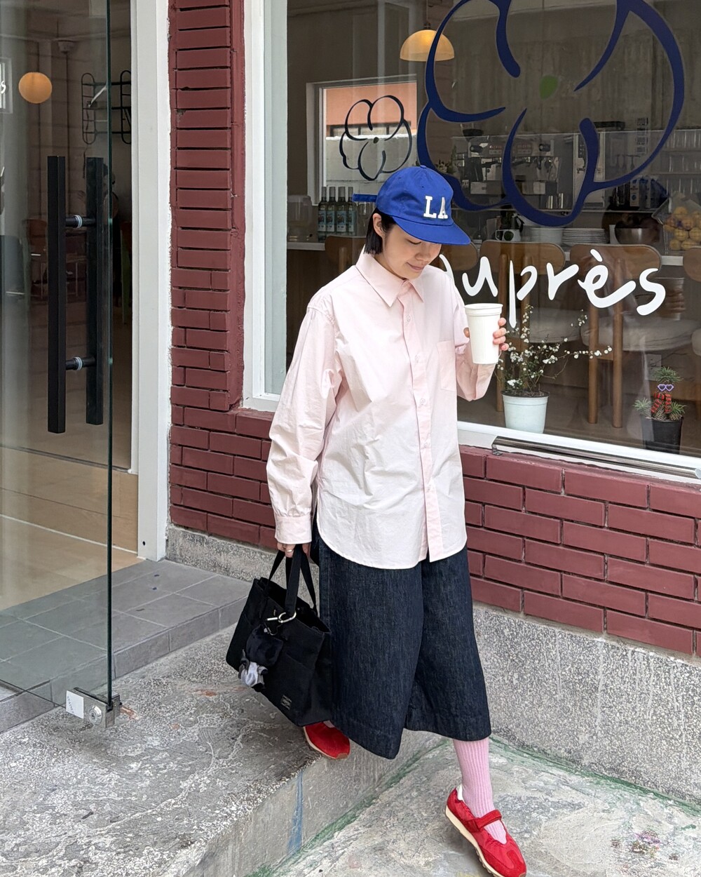 따뜻한 날 볼캡에 내추럴 컬러 팬츠와 꼭 함께 입어보세요!🌸