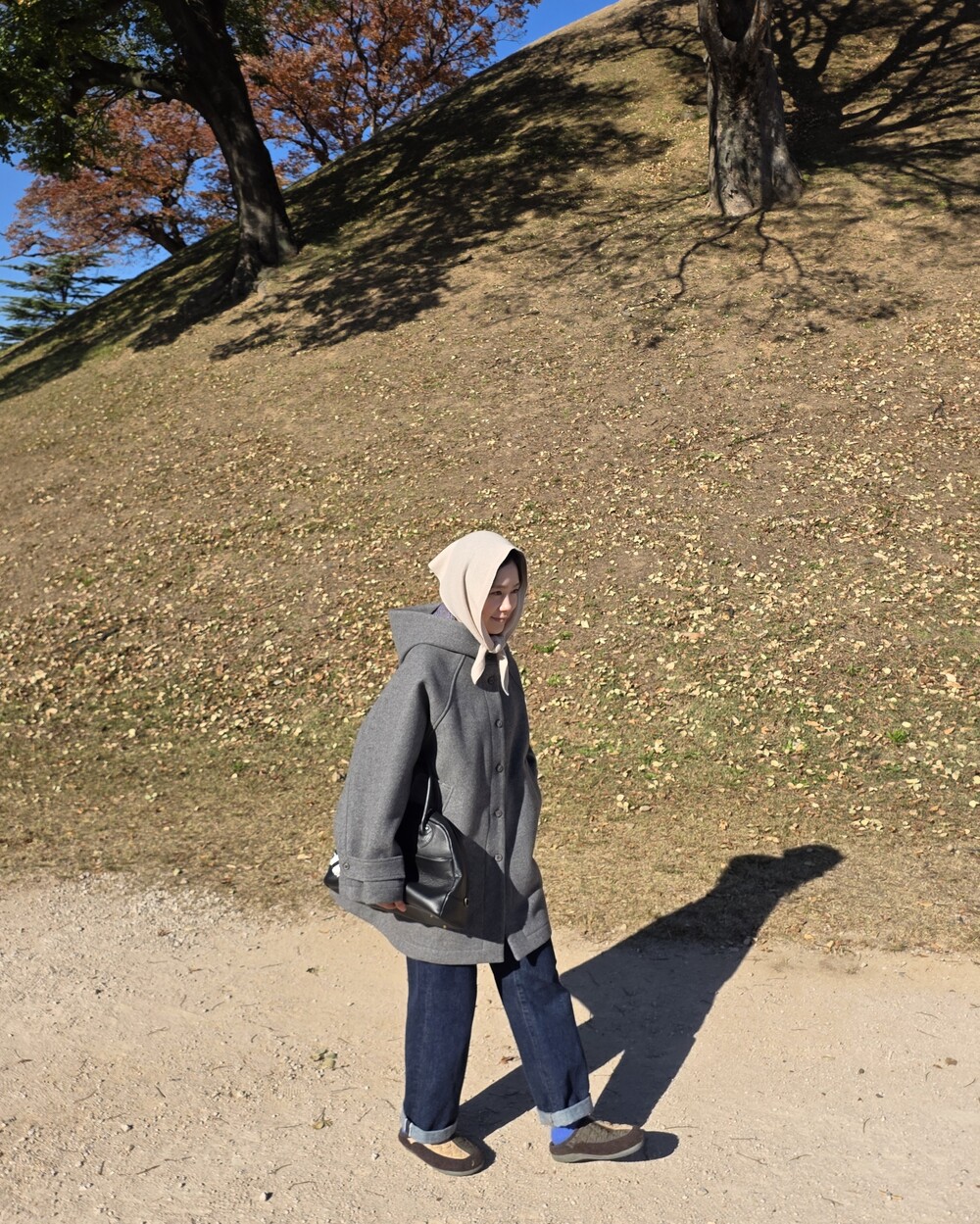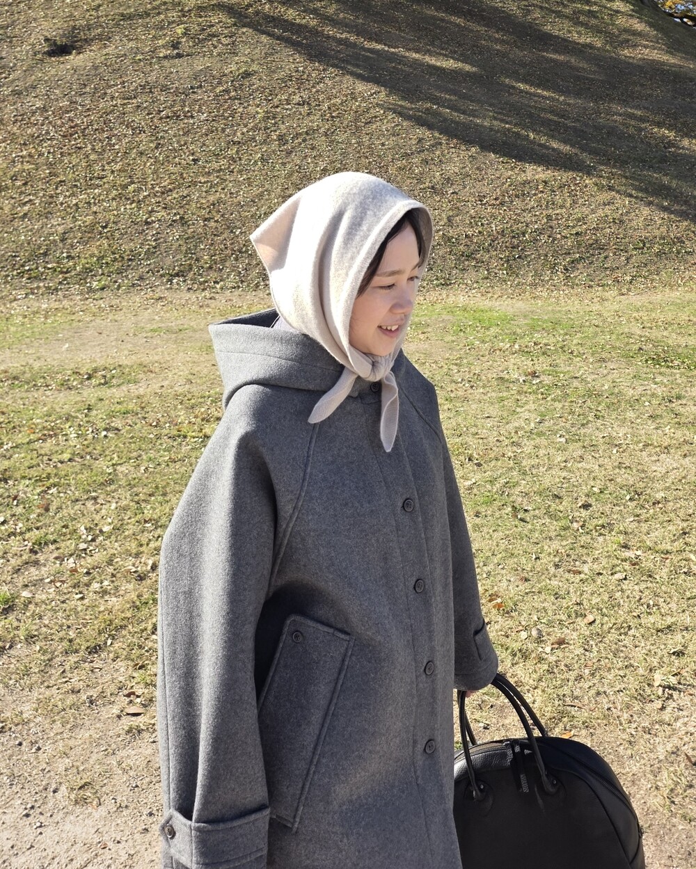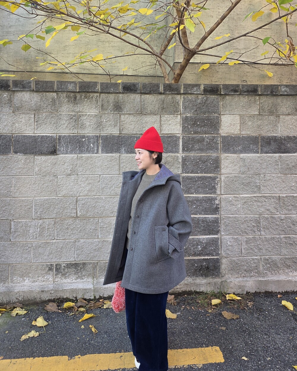목을 자연스럽게 감싸주는 후드 라인 덕분에 머플러 없이도 따뜻하고 완성도 있는 실루엣입니다. 물론 안쪽으로 따뜻하게 머플러를 해주어도 너무 좋고요!