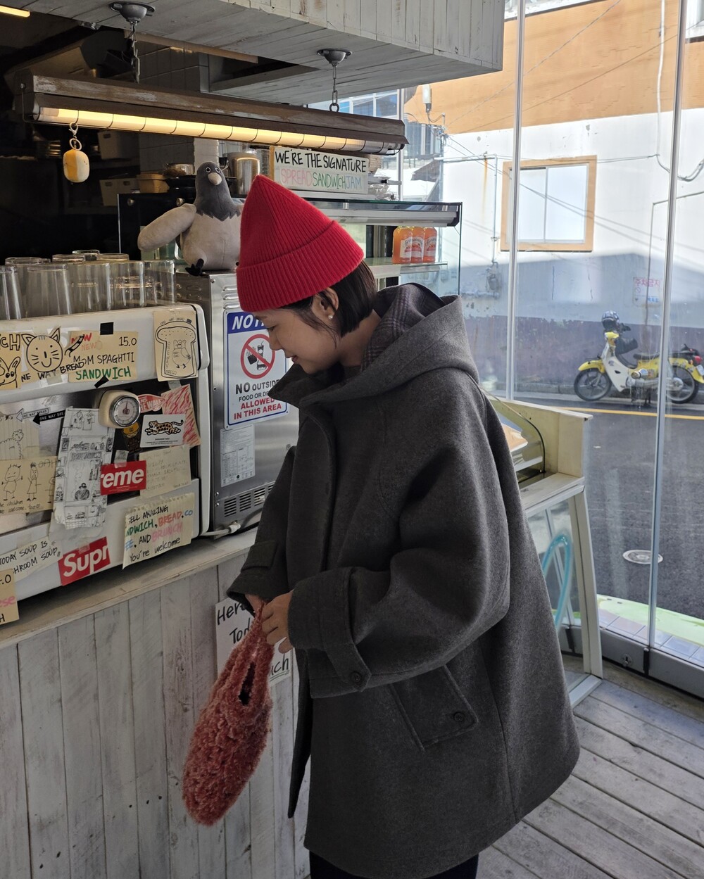 후드가 더해져 클래식 코트보다 자연스러운 느낌이에요.