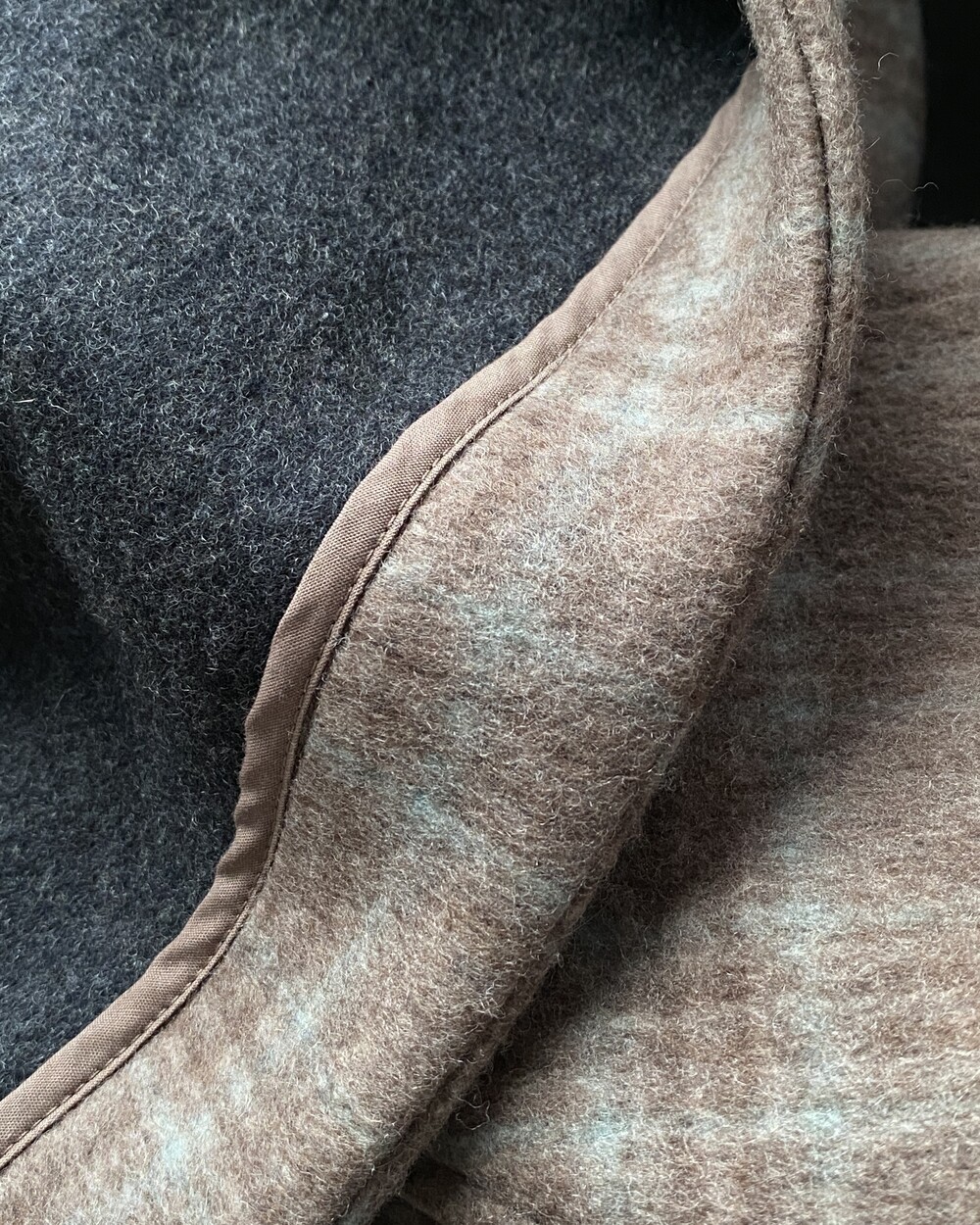 원단 양쪽이 다른 이중지라 가지고 있는 이 코트의 장점을 후드코트로 풀어내서 최대한 살려보았어요.