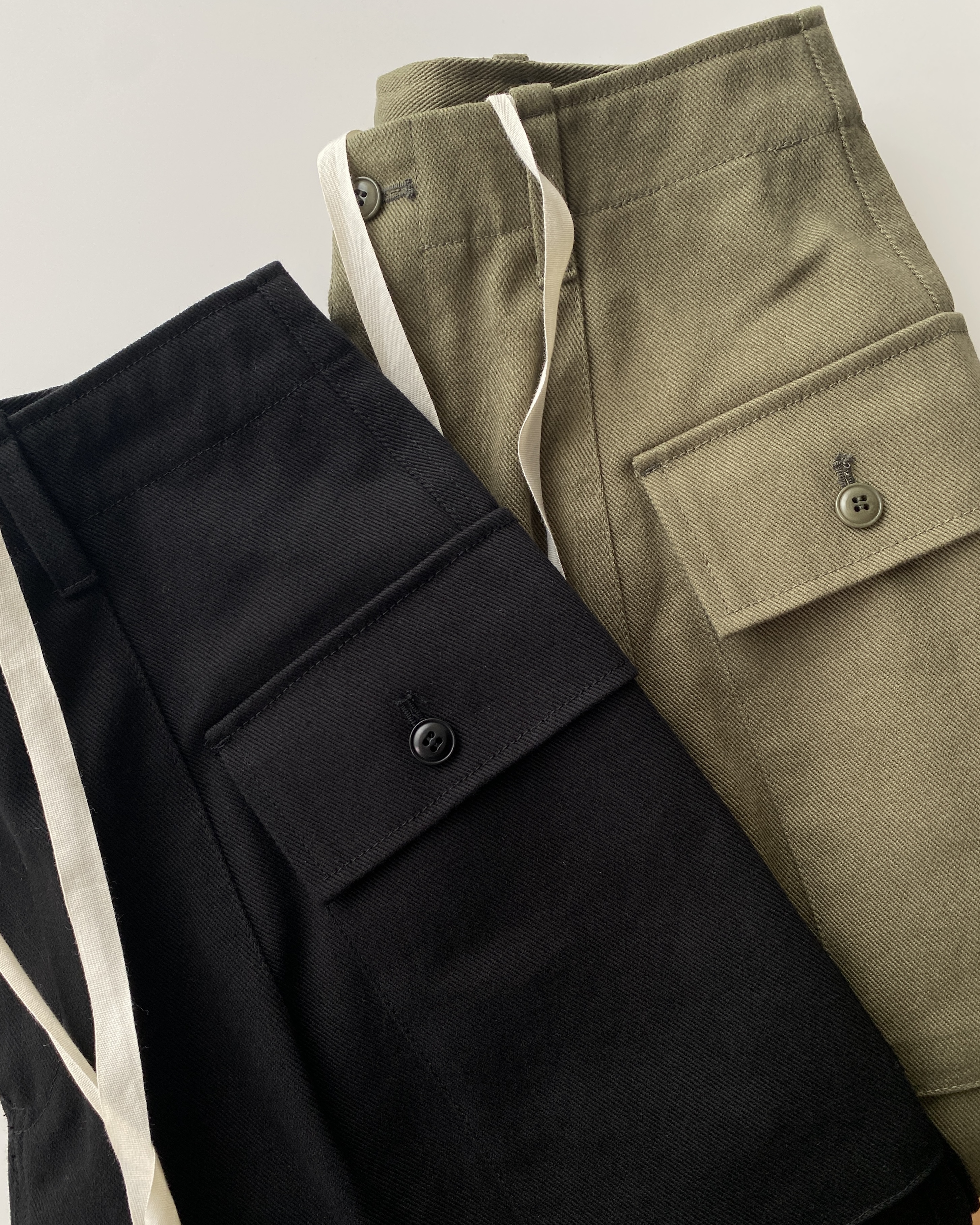 워크 재킷과도 잘 어울렸고요. 뒤 포켓은 만들지 않았어요. 그래서 카고 팬츠이지만 미니멀한 느낌도 있어 좋더라고요.