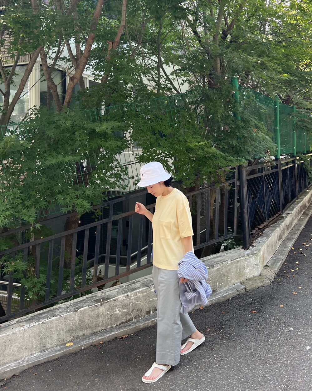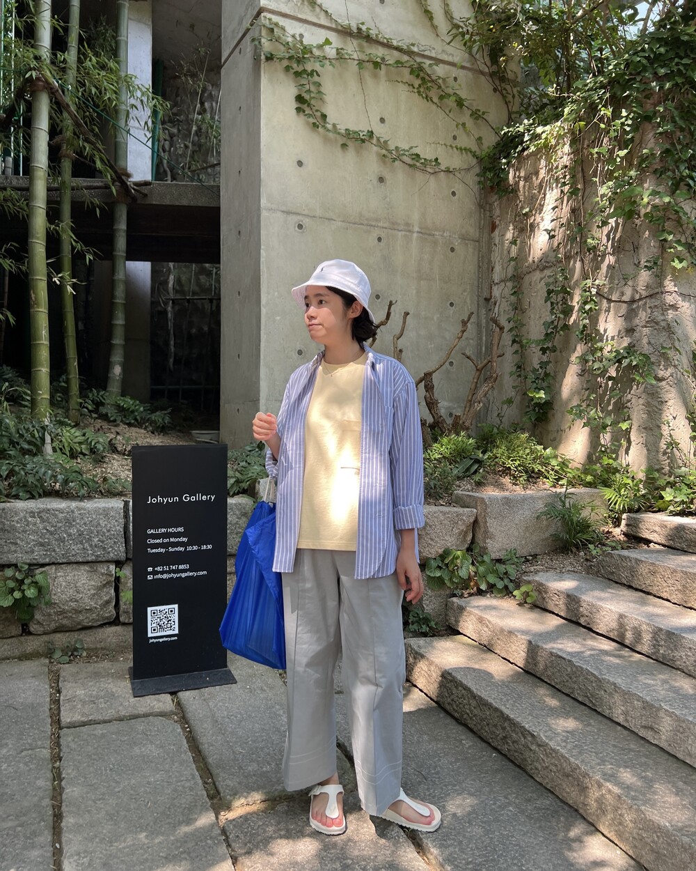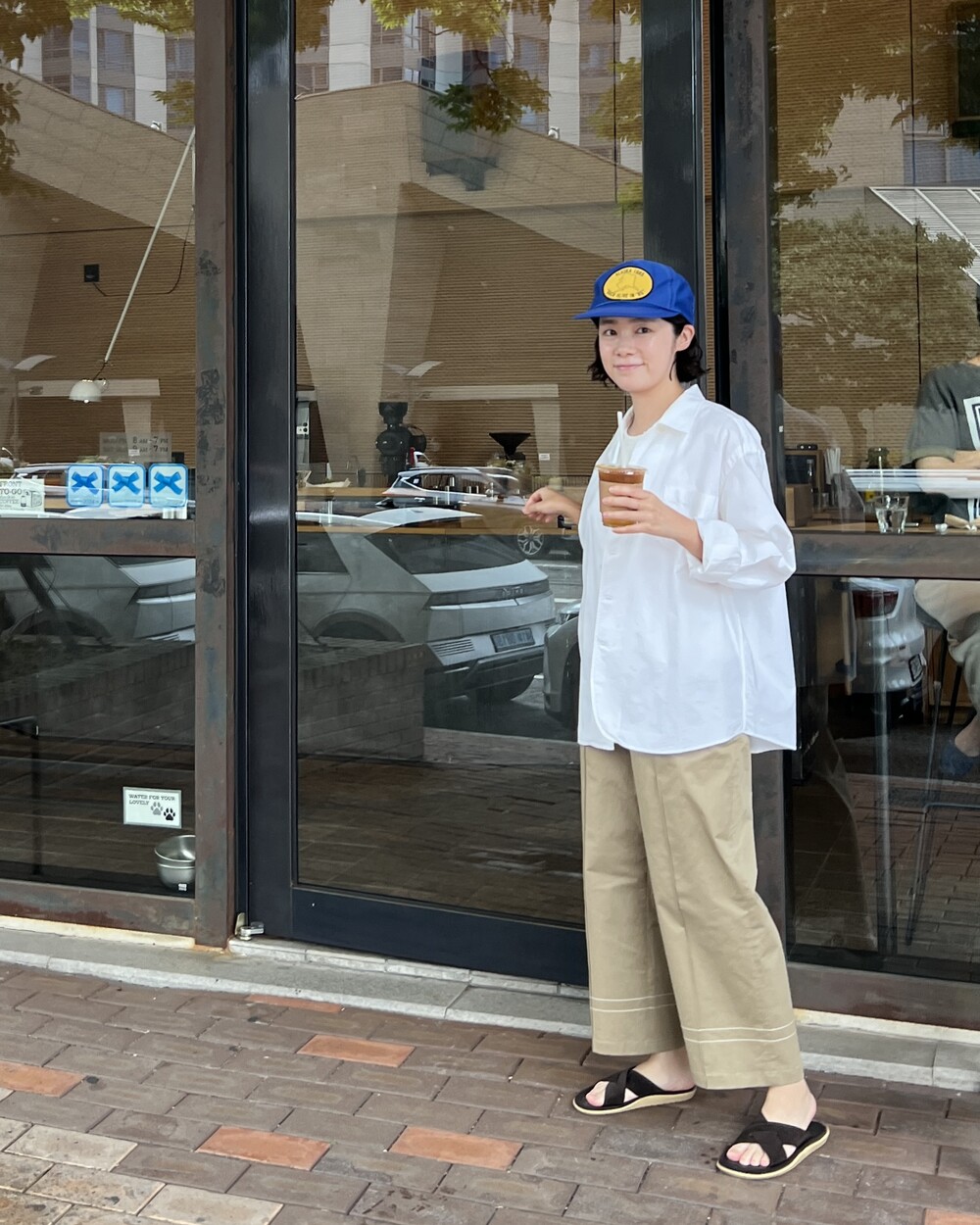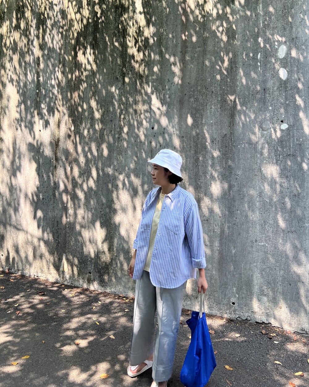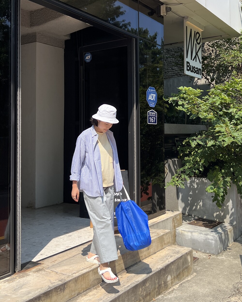 버킷 햇에 셔츠랑 무심하게 🫶🏻 쓱 입어주기 좋은 팬츠예요. 여기저기 정말 편안하게 입을 수 있는, 베이스로서의 역할을 잘 해주는 느낌이었어요.