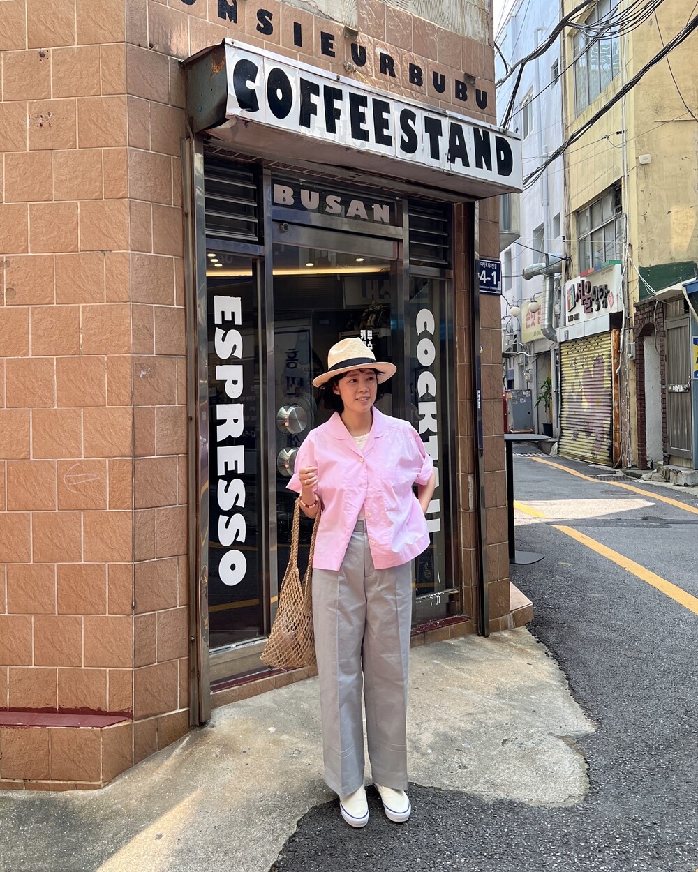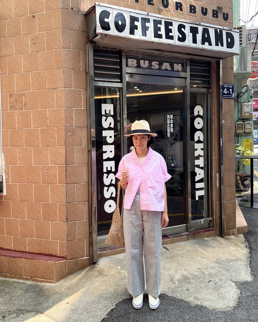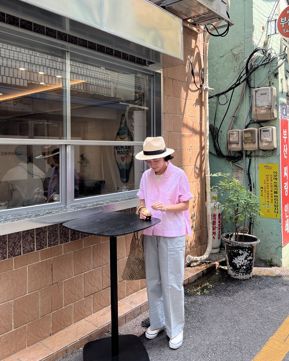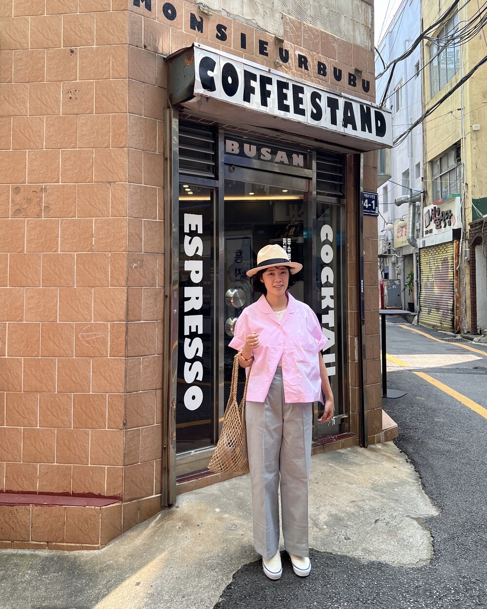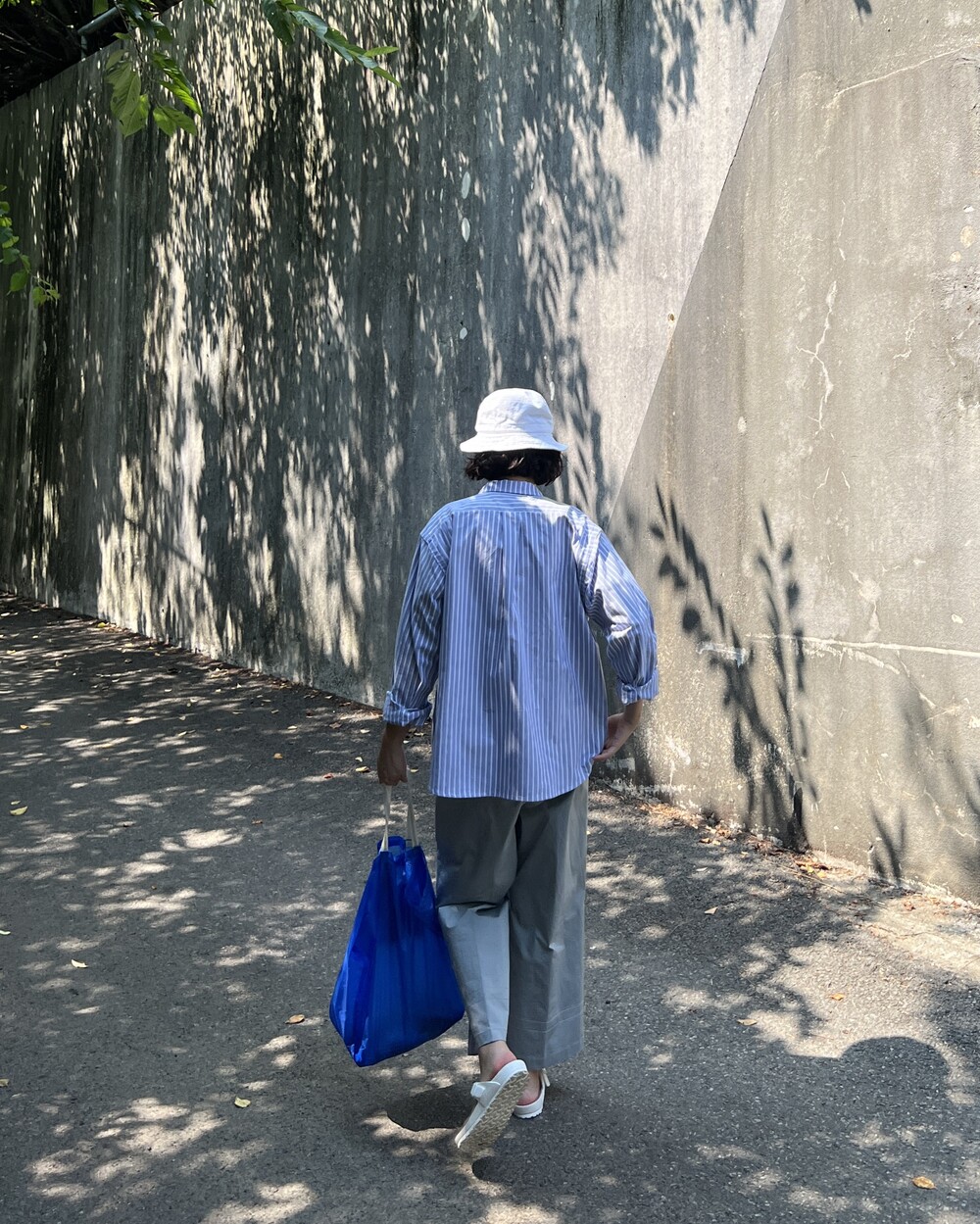 버킷 햇에 셔츠랑 무심하게 🫶🏻 쓱 입어주기 좋은 팬츠예요. 여기저기 정말 편안하게 입을 수 있는, 베이스로서의 역할을 잘 해주는 느낌이었어요.