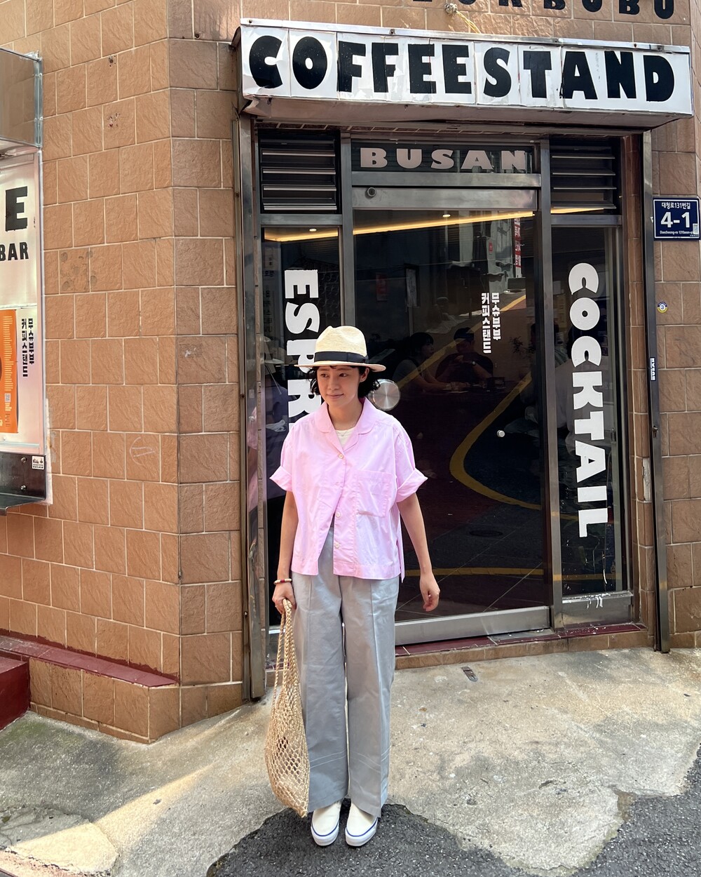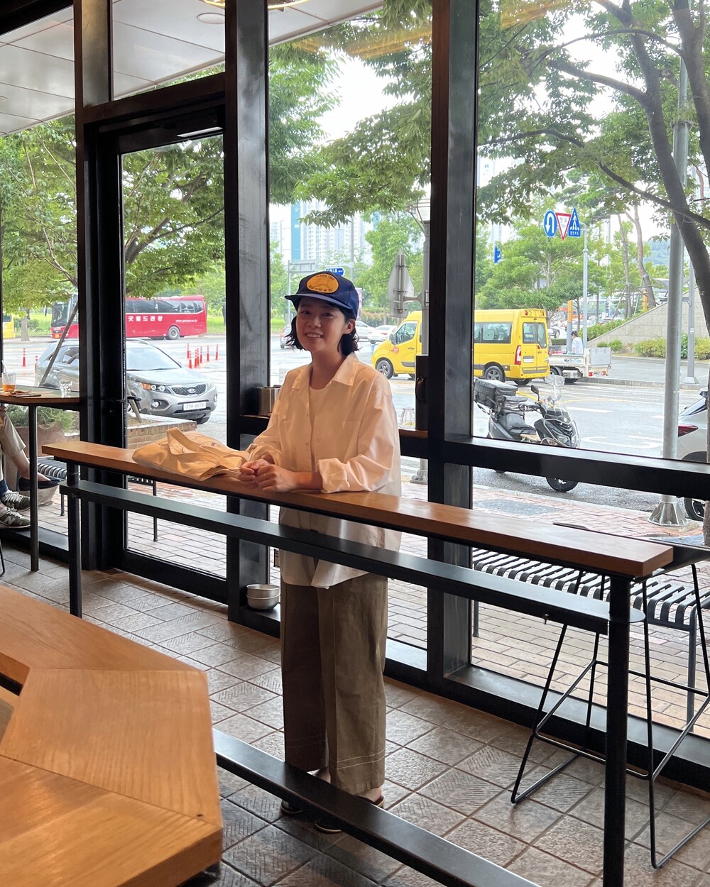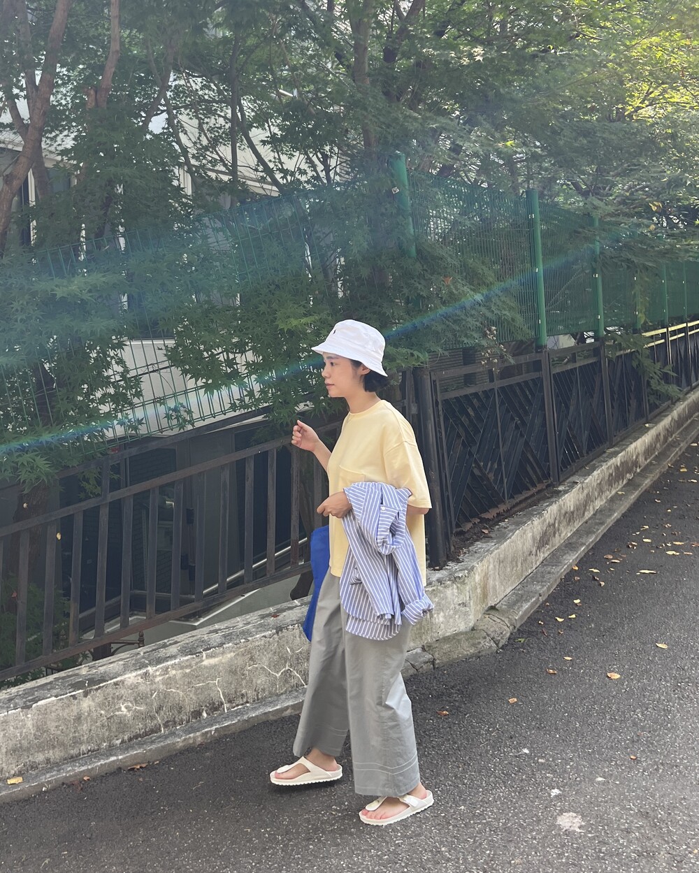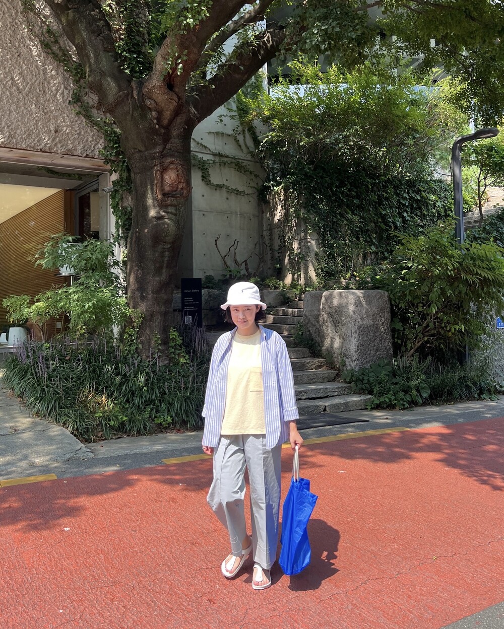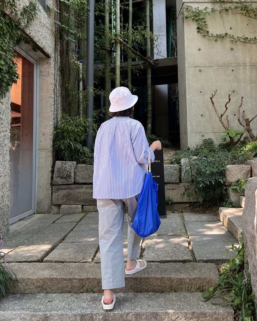 버킷 햇에 셔츠랑 무심하게 🫶🏻 쓱 입어주기 좋은 팬츠예요. 여기저기 정말 편안하게 입을 수 있는, 베이스로서의 역할을 잘 해주는 느낌이었어요.