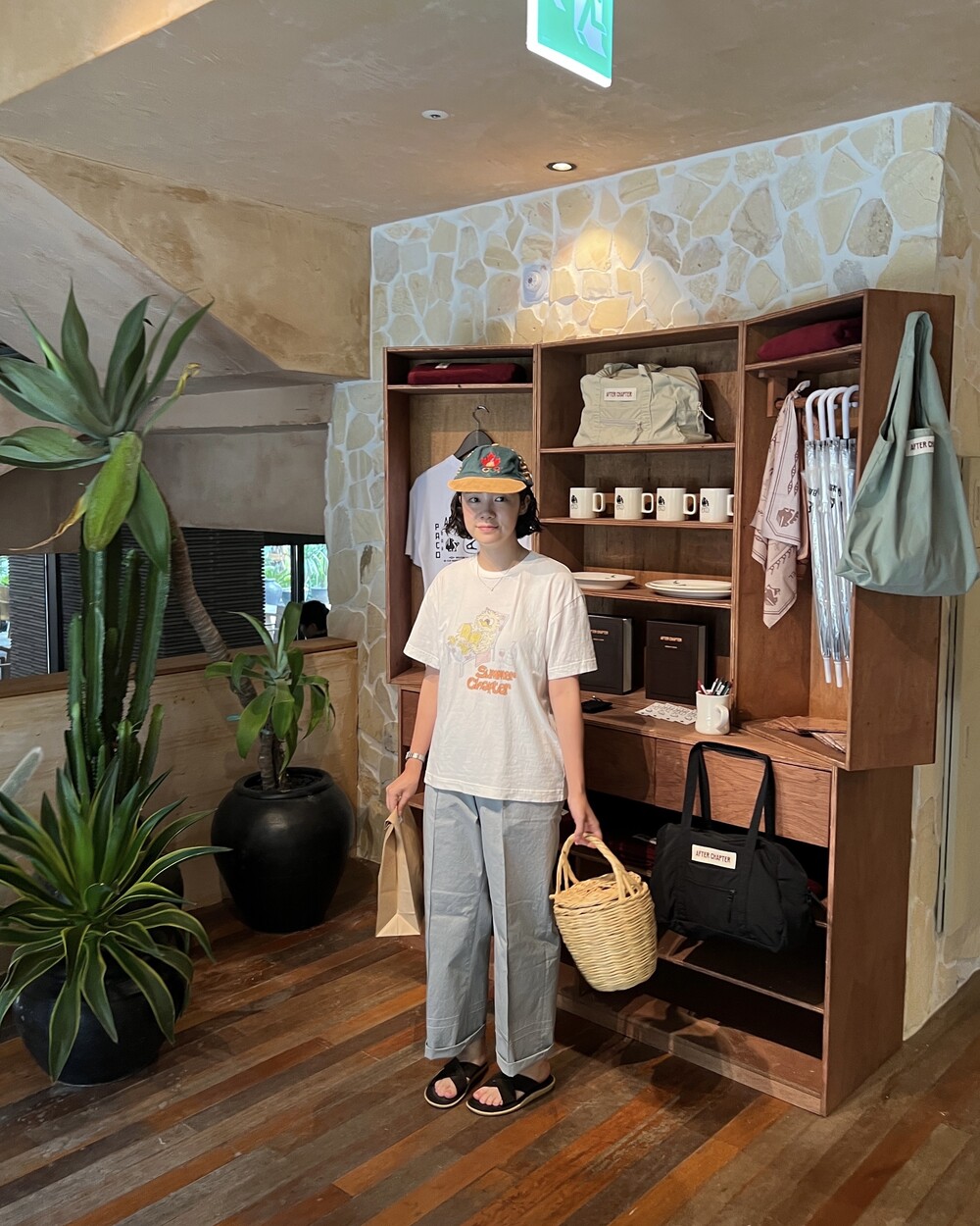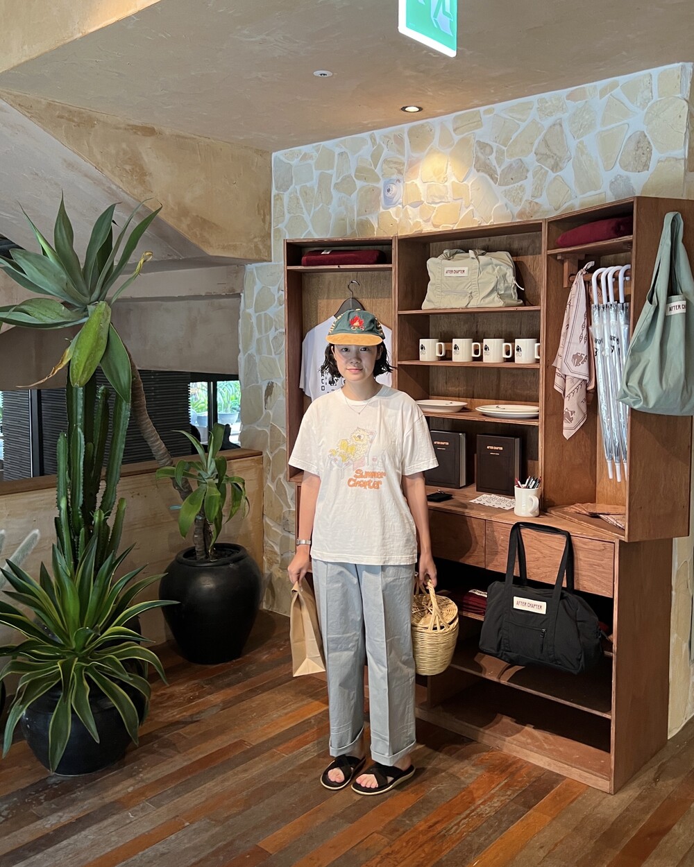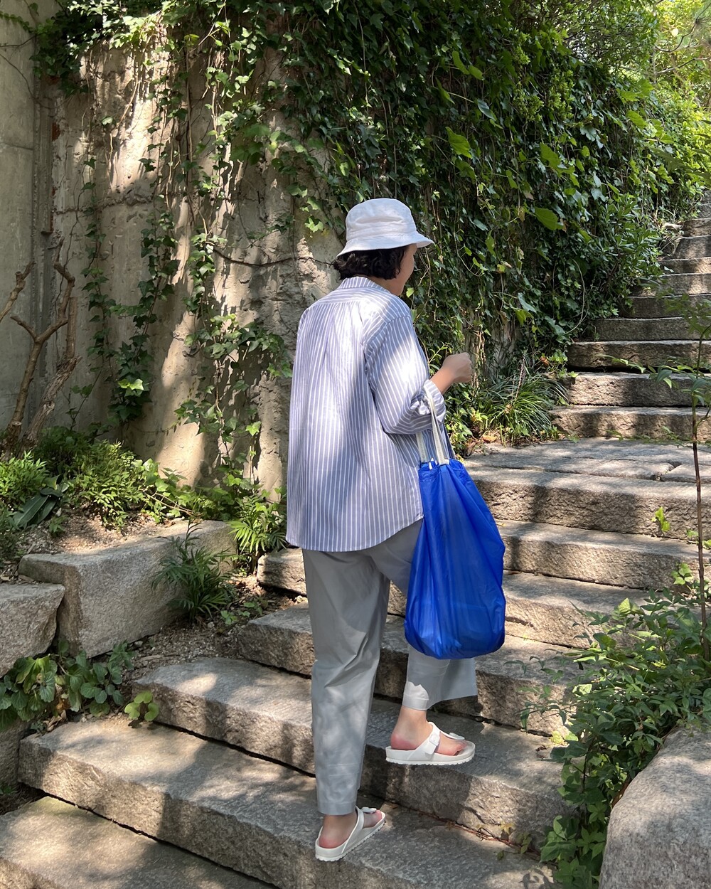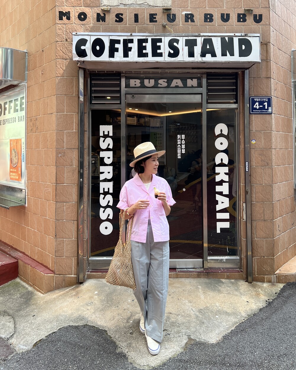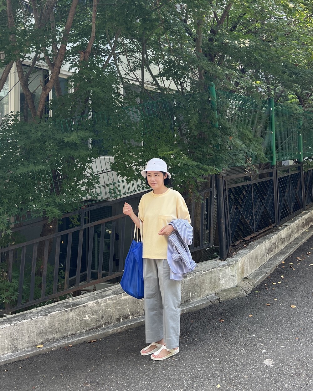 버킷 햇에 셔츠랑 무심하게 🫶🏻 쓱 입어주기 좋은 팬츠예요. 여기저기 정말 편안하게 입을 수 있는, 베이스로서의 역할을 잘 해주는 느낌이었어요.