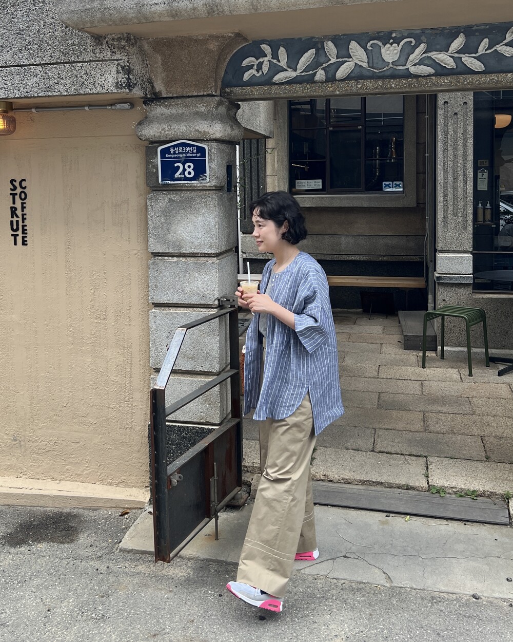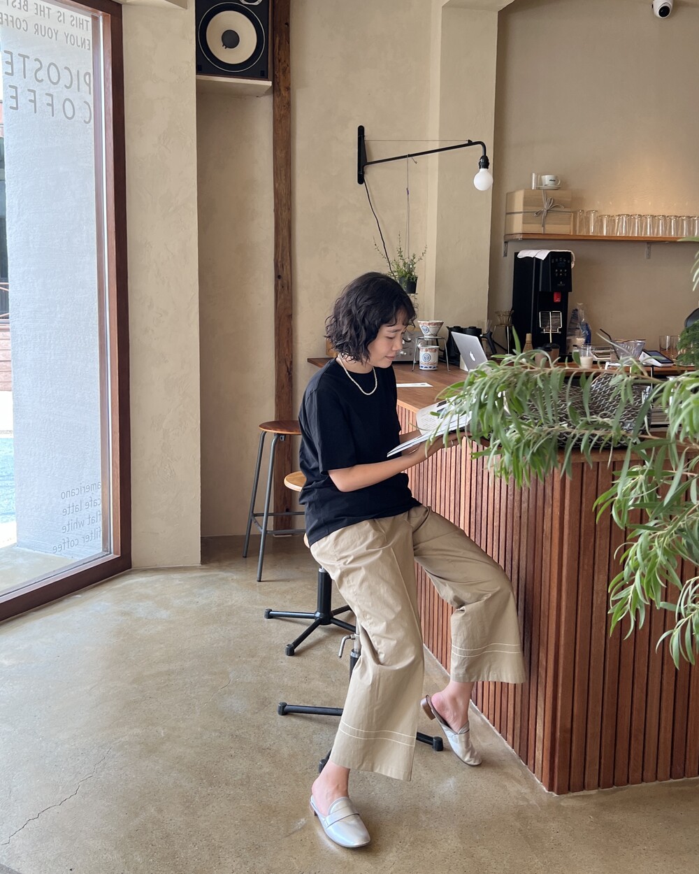 입어보니 역시 편안하고 멋스러워 너무 좋았고 무엇보다 좋은 건 바지 한 가지 아이템으로 소화해낼 수 있는 착장이 무궁무진한 팬츠였어요.
