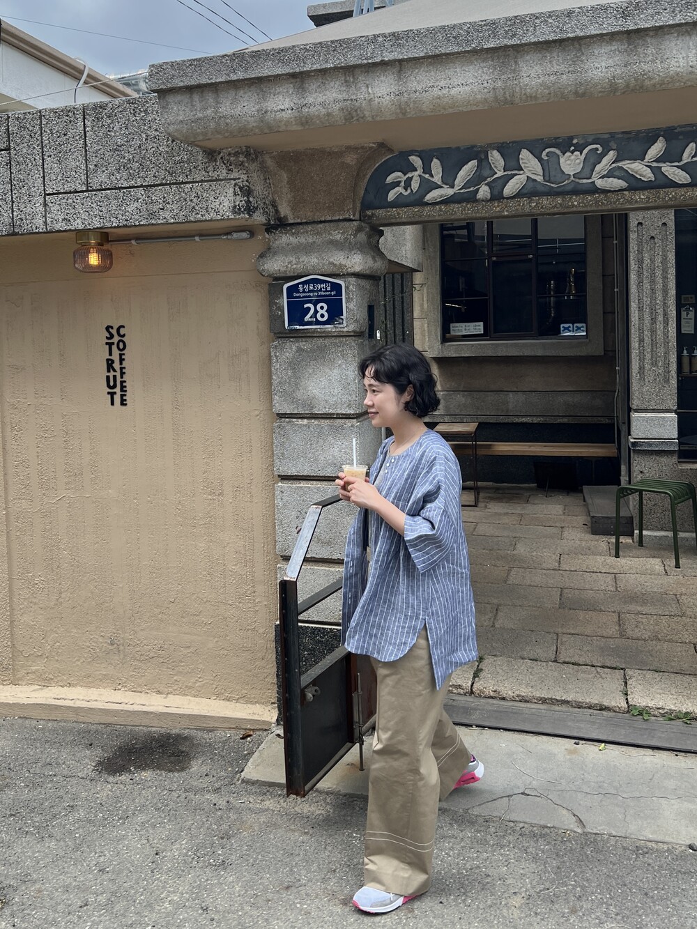 로퍼도 잘 어울려요. 넉넉한 화이트 셔츠랑 함께 입어도 차분하고 좋지요.