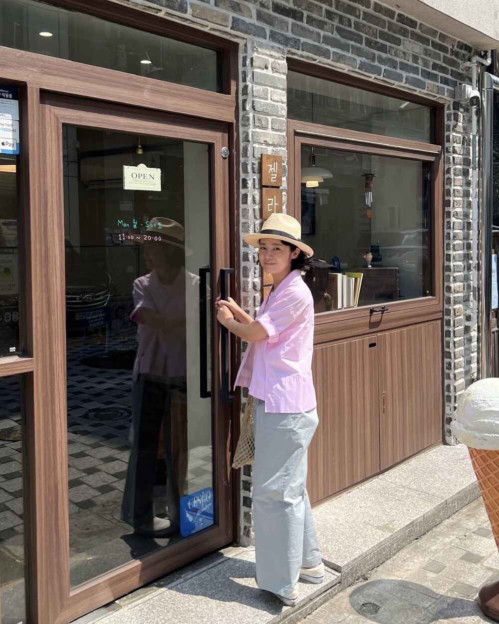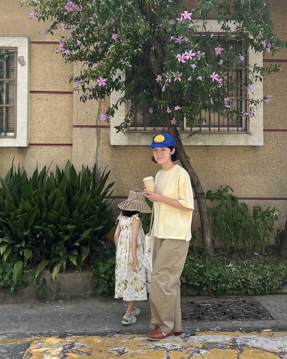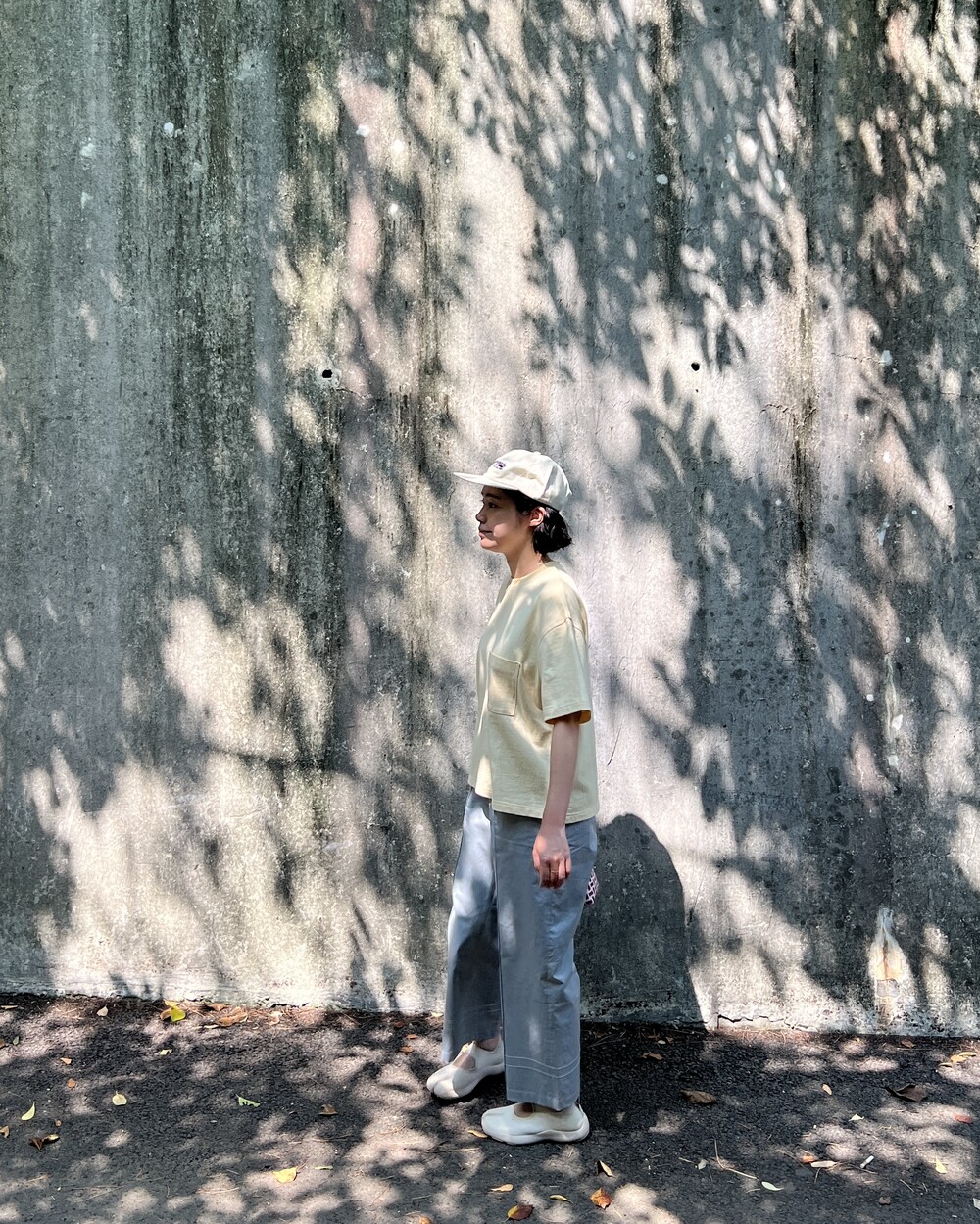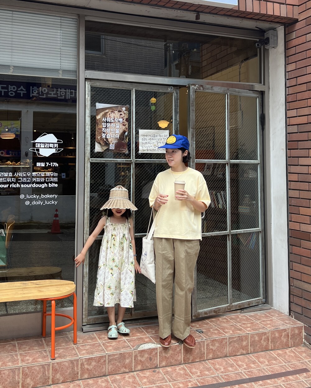 색감이 은은해서 그런지 파스텔톤 상의들이랑 잘 어울렸어요. 티셔츠는 출시 예정 버터 컬러인데 이렇게 두 아이템을 함께 입으면 예쁘더라고요.