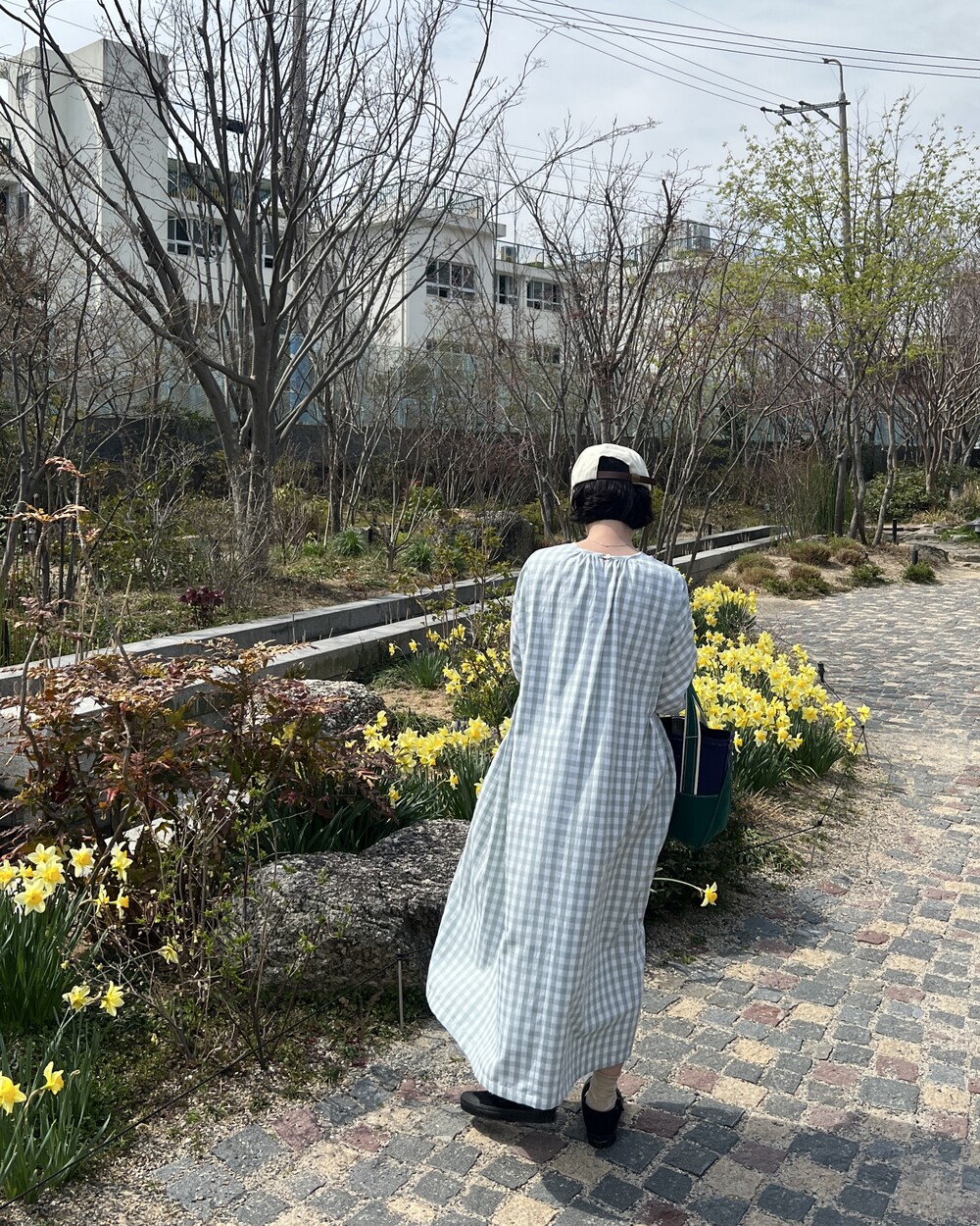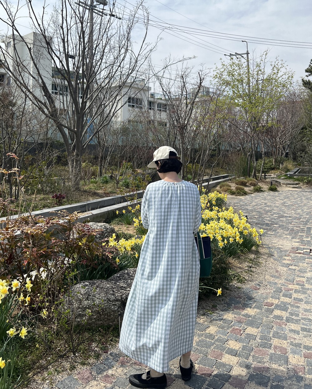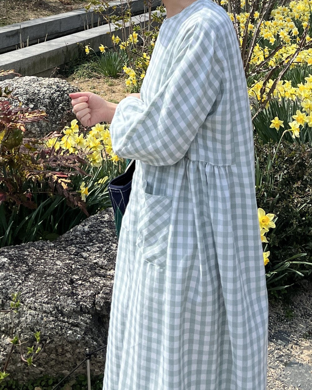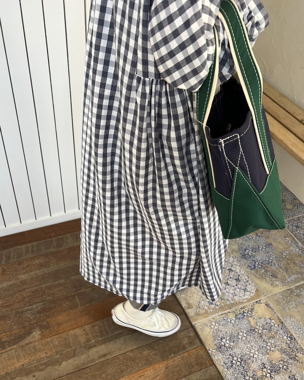 산뜻한 깅엄체크 패턴이 돋보이는 드레스를 만들어 보았어요.