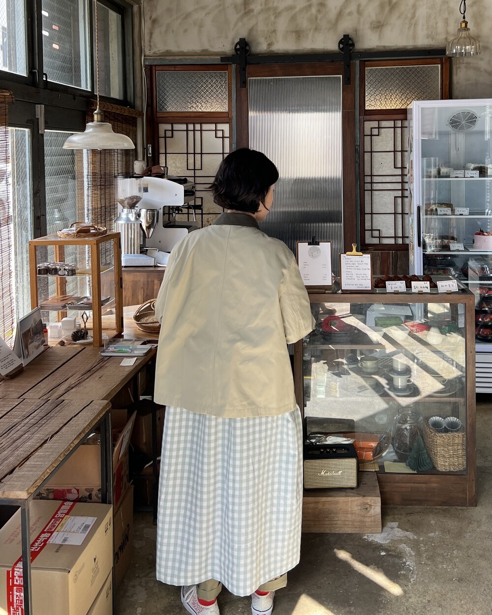 절개가 앞/뒤로 되어있어 공장에서 체크 패턴 맞추실 때 상당히 오래 걸린다고 좋아하진 않으셨지만;;