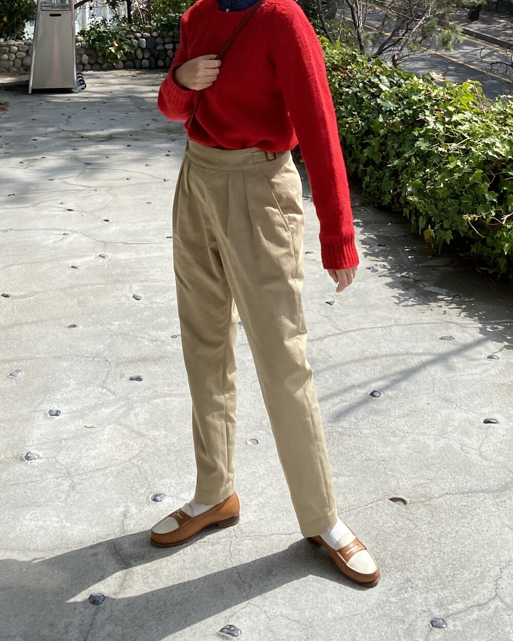 편안한 느낌으로도 연출하기도 좋고 로퍼랑 깔끔하고 클래식한 느낌으로도 입기 좋아서 다양한 옷차림에 활용하기 좋은 것 같아요.