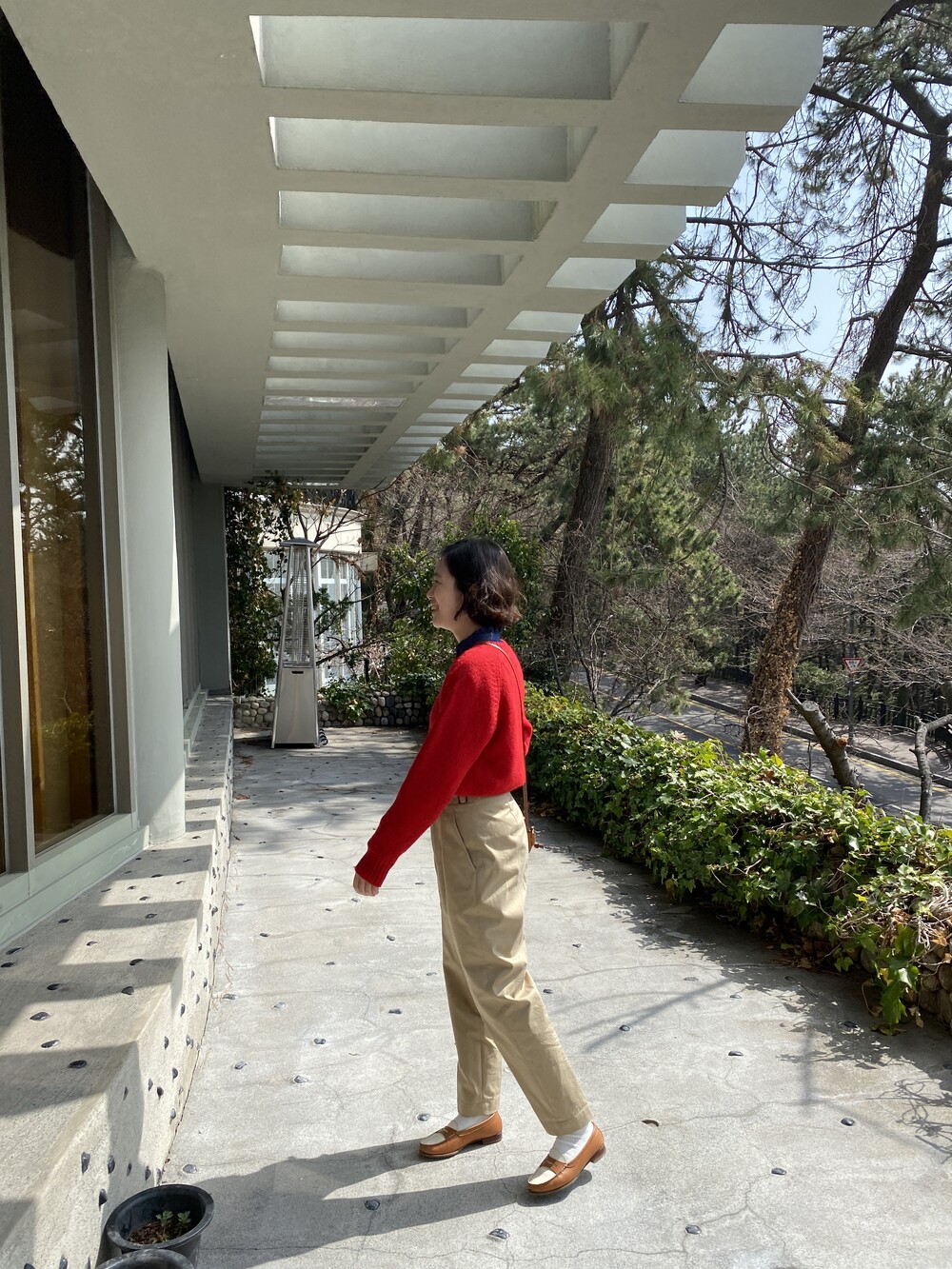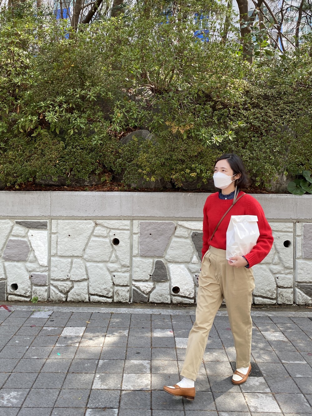 봄에 셔츠 넣어 입고 니트를 걸쳐 입어도 참 좋을 것 같고 예쁜 색감의 니트를 넣어 입기도 좋아요.