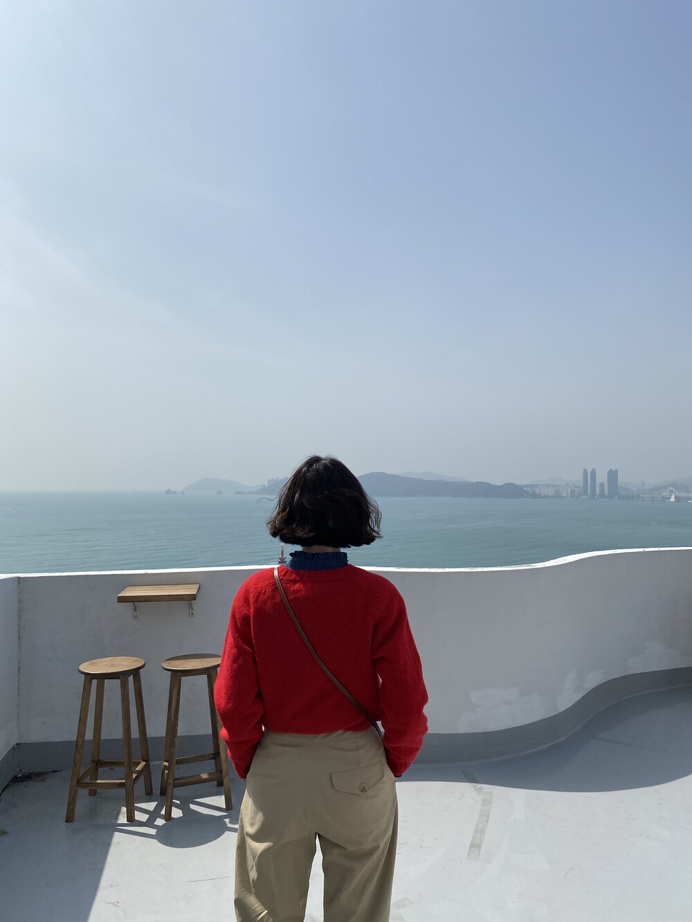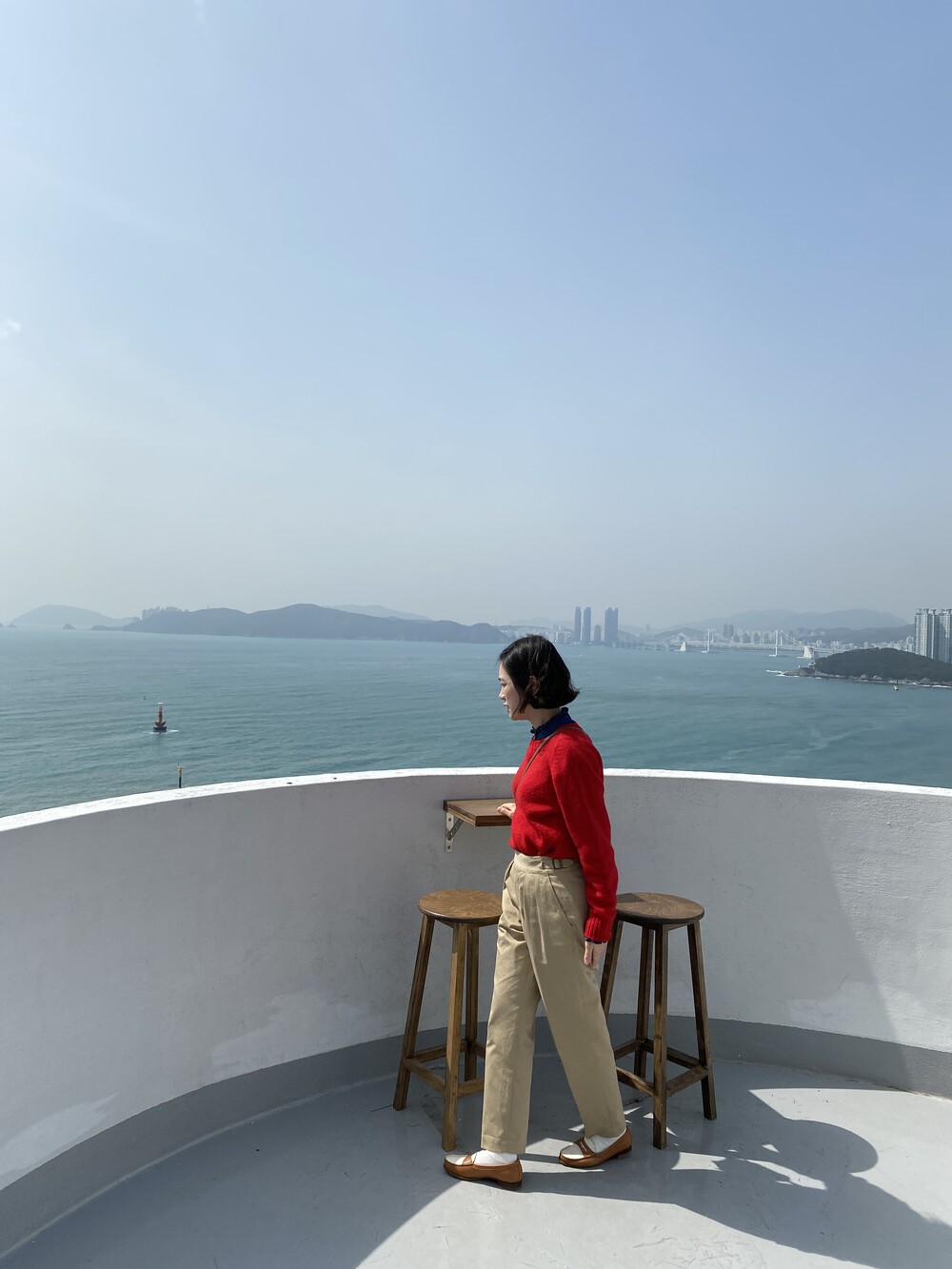 상의를 옷에 넣어 입어도 예쁘고, 이렇게 꺼내어 입기도 좋아서 다양하게 연출하기도 좋은 제품 같아요. :)