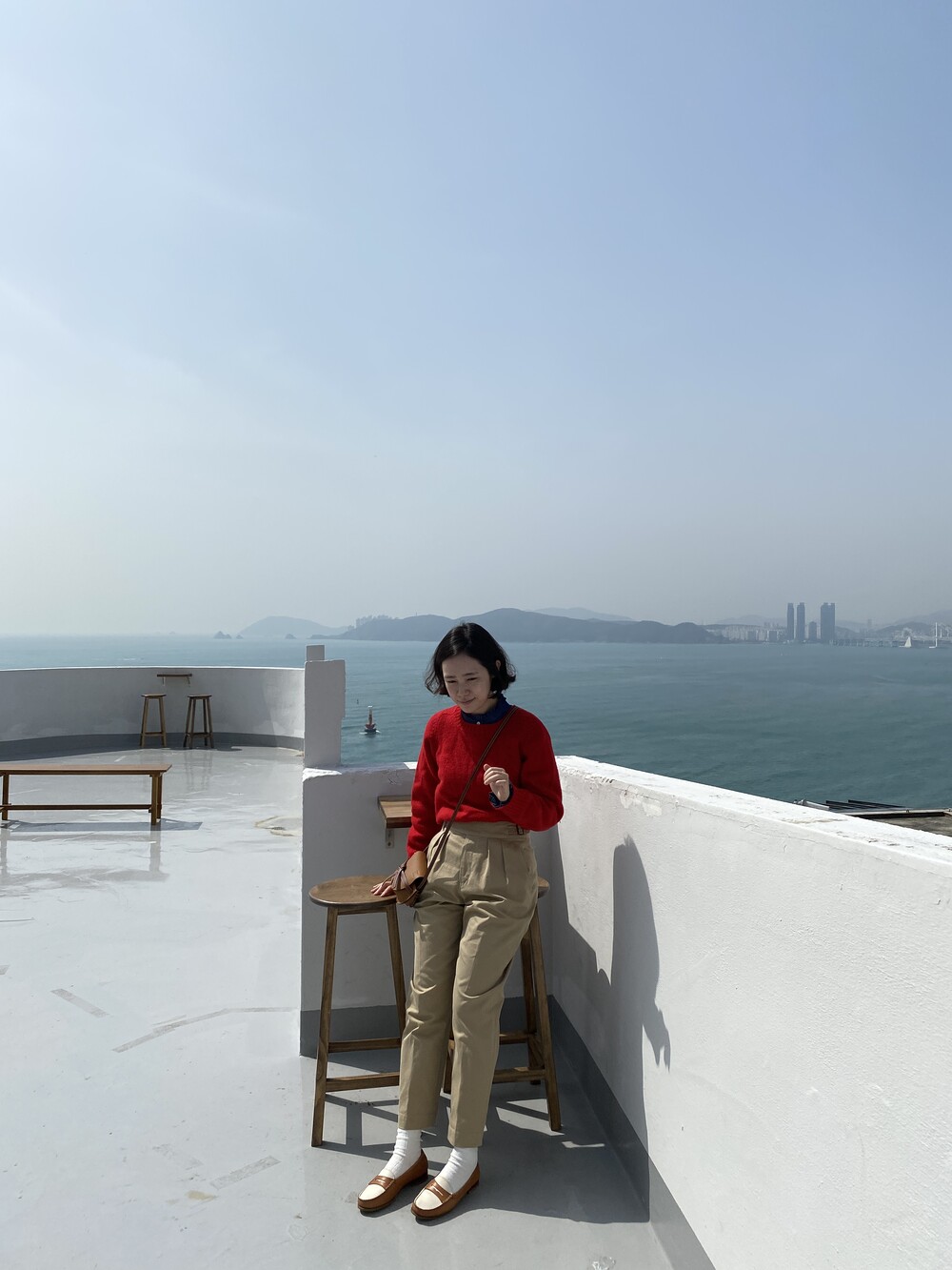 개인적으로 마음에 들었던 것 니트 상의를 인해서 입는 스타일이었어요.